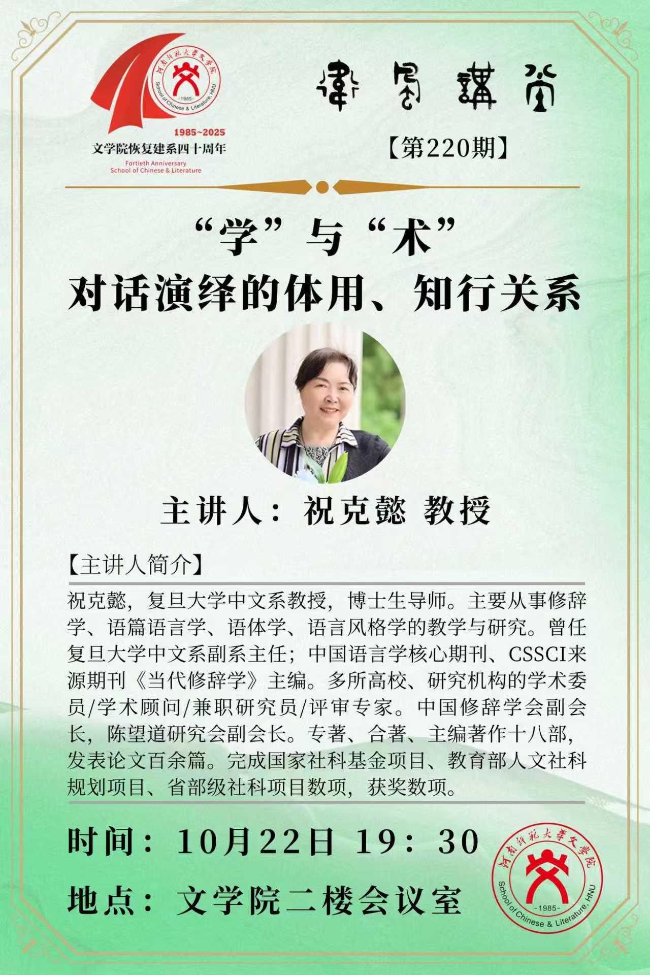 复旦大学祝克懿教授将应邀做客“卫风讲堂”