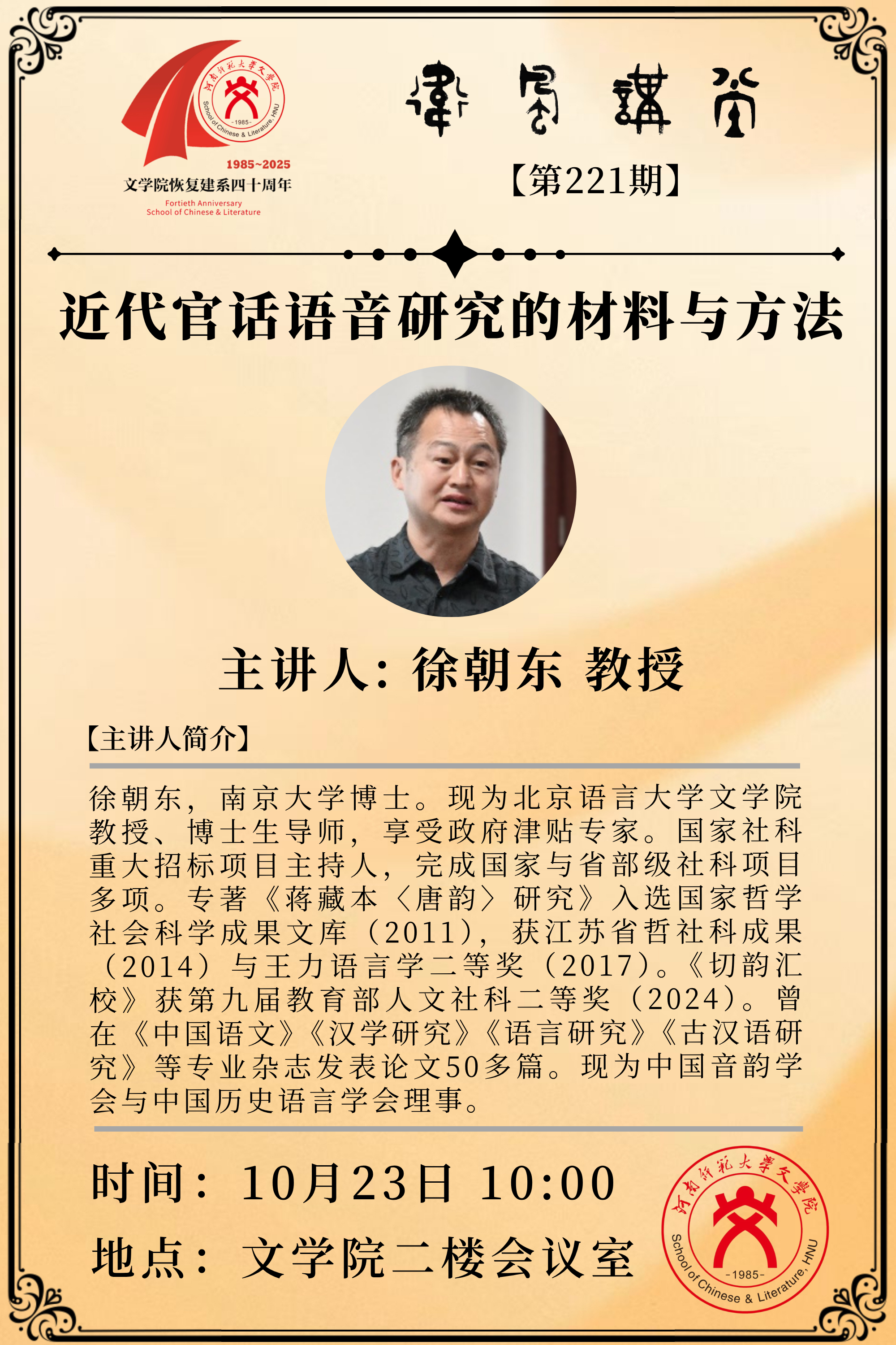 北京语言大学徐朝东教授将应邀做客“卫风讲堂”