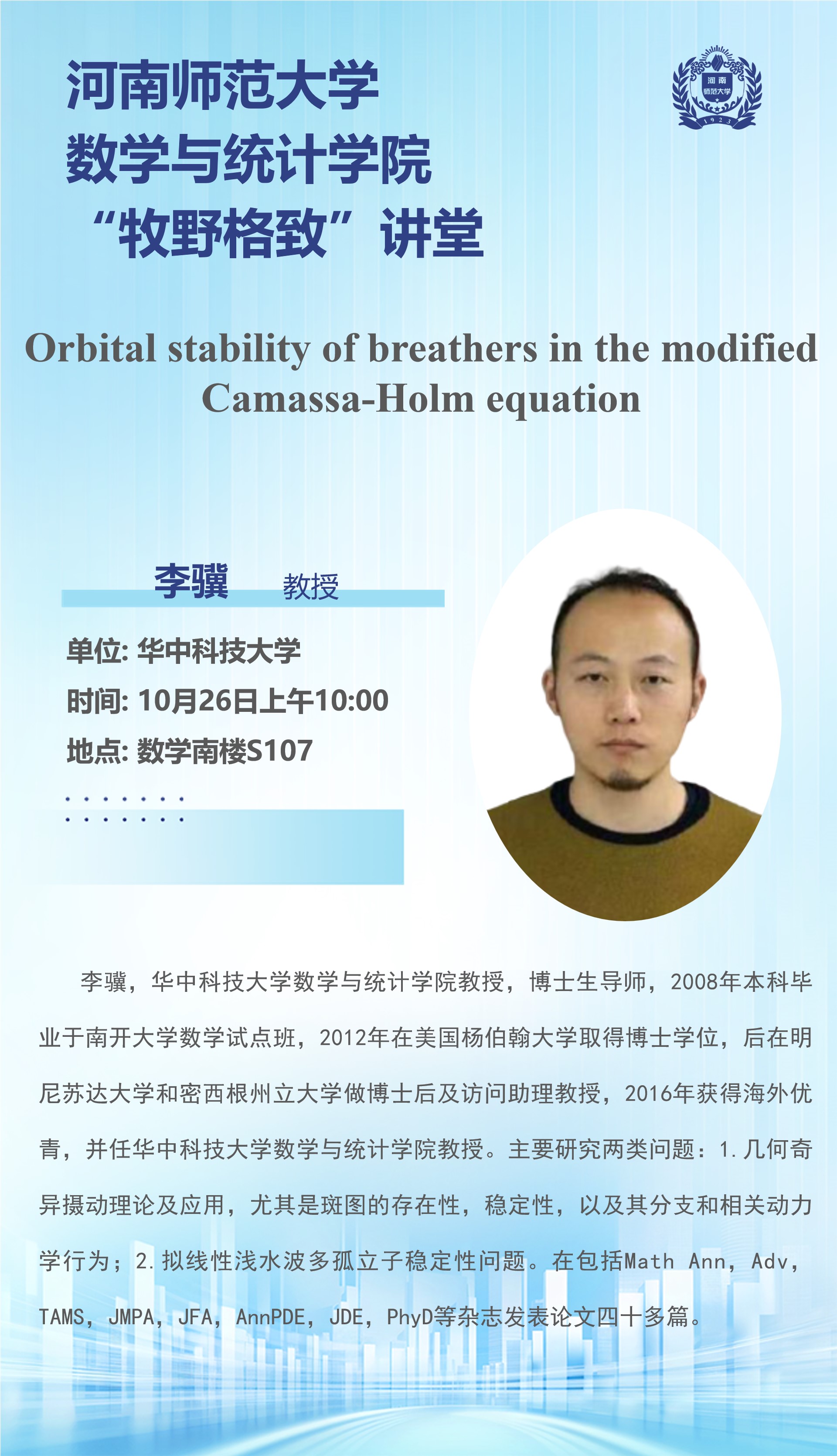 华中科技大学李骥教授将应邀做客“牧野格致”讲堂