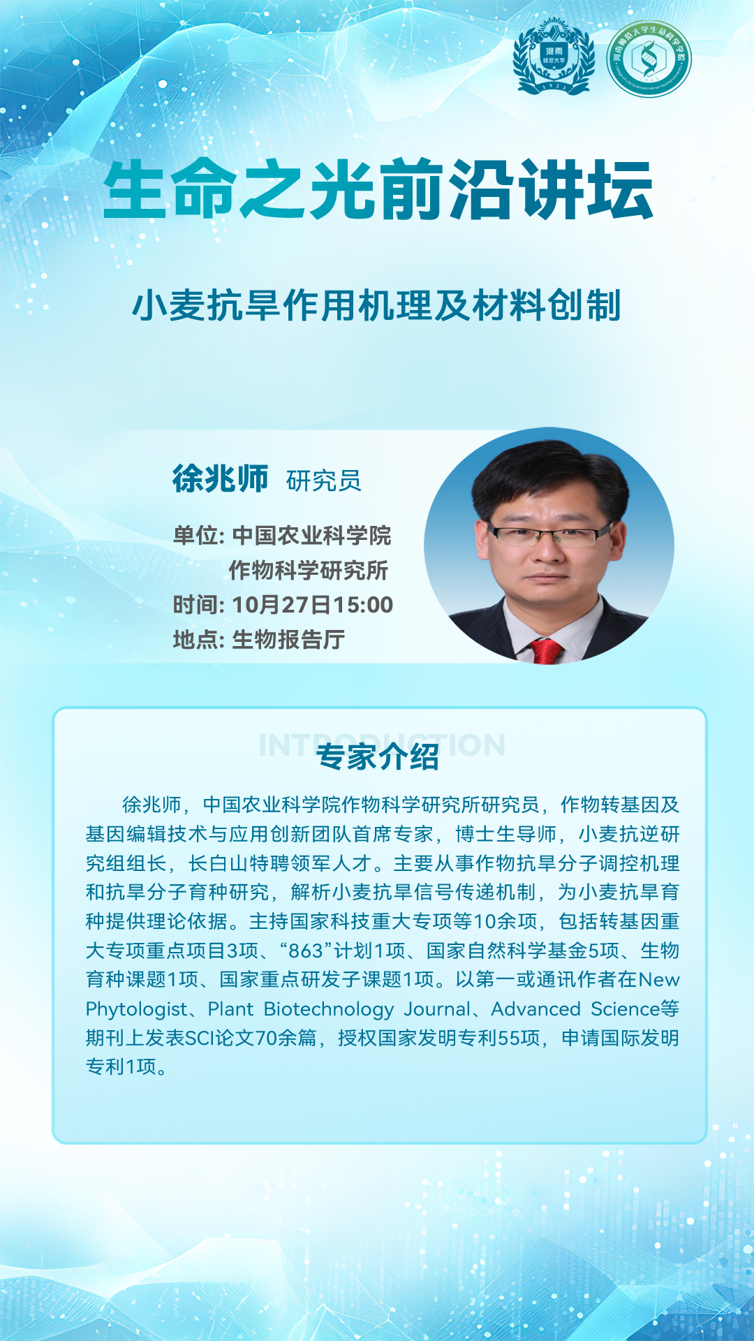中国农业科学院作物科学研究所徐兆师研究员将应邀做客“生命之光”前沿讲坛