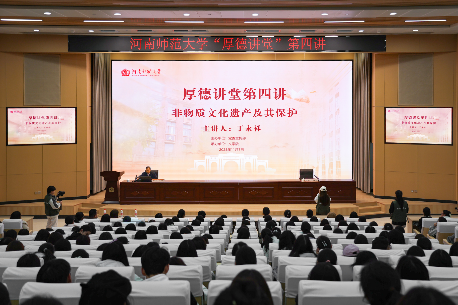 本期讲堂邀请文学院教授、博士生导师、中原非物质文化遗产保护研究中心主任丁永祥担任主讲嘉宾。讲座中,丁永祥教授以“非物质文化遗产及其保护”为主题,系统阐述了非物质文化遗产的内涵、独特价值及其内在特点与发展规律,深入介绍了生态保护的科学方法与实践路径。他结合自身长期深耕非遗保护领域的丰富经验,分享了指导创建全国首个农民非遗保护中心、大学生非遗保护协会的实践案例,以及所指导的“河南师大非物质文化遗产保护协会”屡获国家级荣誉的先进事迹。丁永祥教授还特别围绕大学生素质教育,指明了非遗传承与个人成长相结合的实践方向,激励师生积极投身文化传承与创新事业。整场讲座内涵丰富、阐释深刻,不仅深化了师生对非遗文化的认知,更激发了大家守护文化遗产、坚定文化自信的责任感与使命感,现场掌声不断。