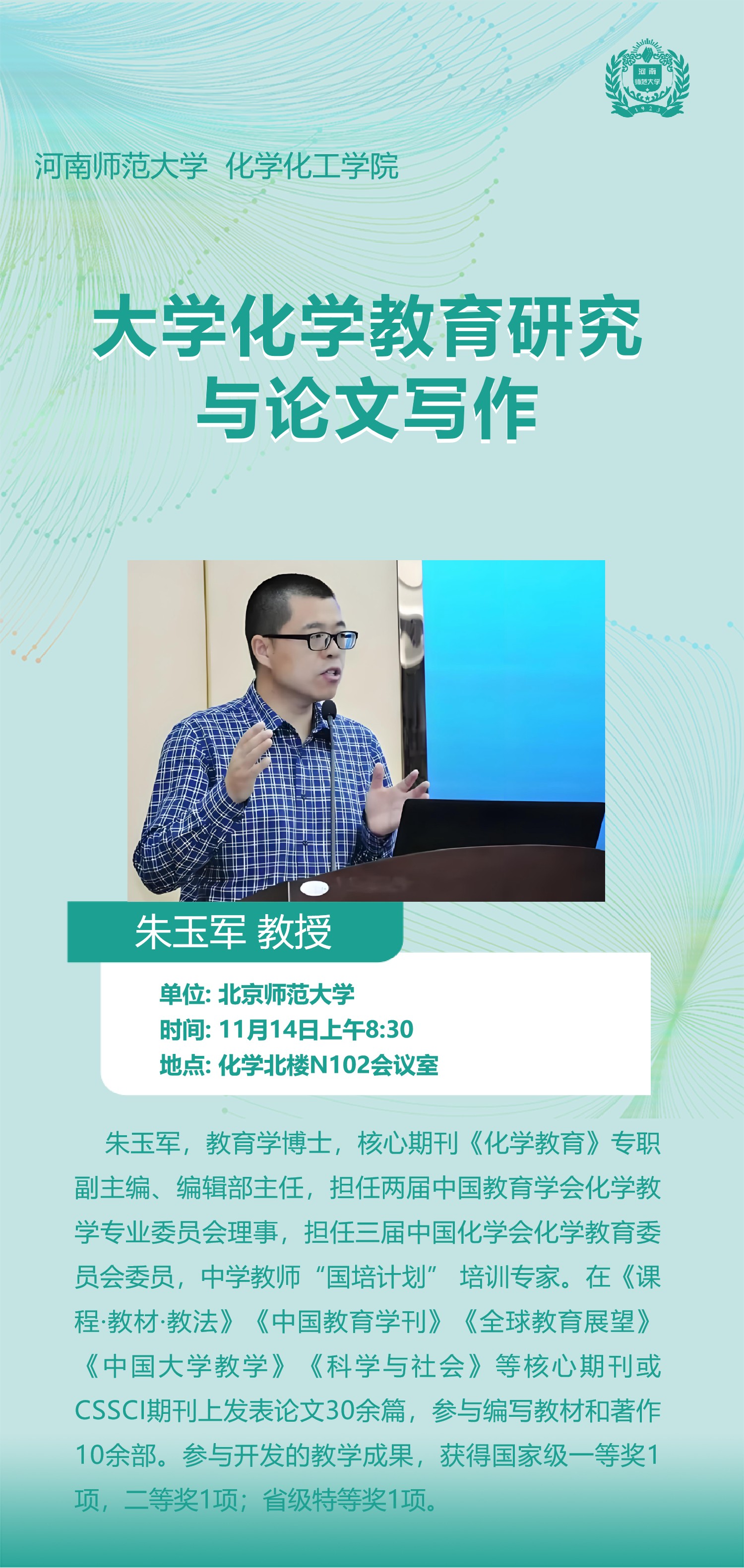 北京师范大学朱玉军教授将应邀做客“俊甫讲堂”