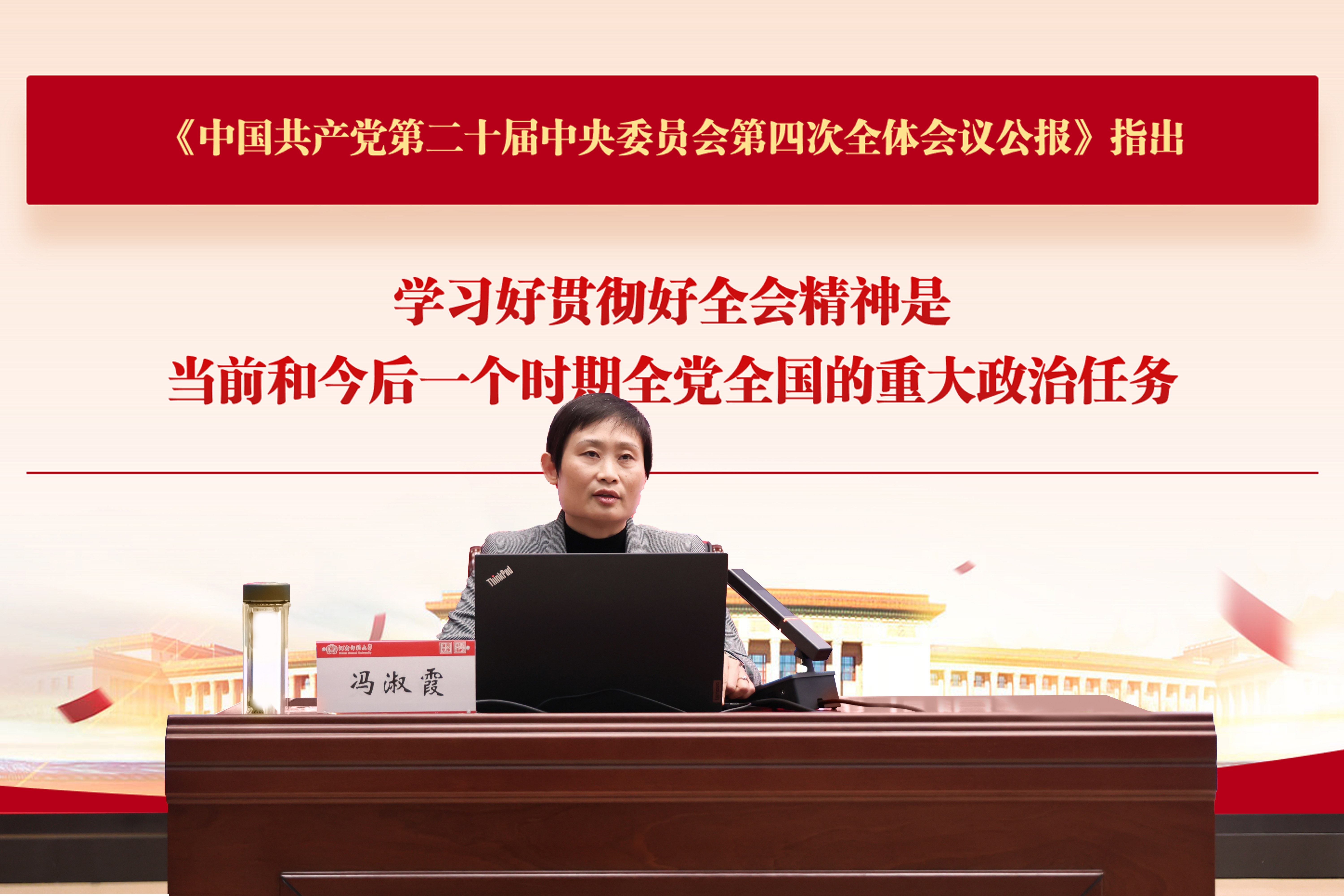 会上,冯淑霞以《乘势而上启新程团结奋斗建新功——深入学习贯彻党的二十届四中全会精神》为题,从“学理论,提站位,在深学细悟中把握发展方向”“懂政策,理思路,在对标看齐中找准发展路径”“懂要求,明任务,在履职尽责中彰显担当作为”三个方面深入解读了党的二十届四中全会精神。