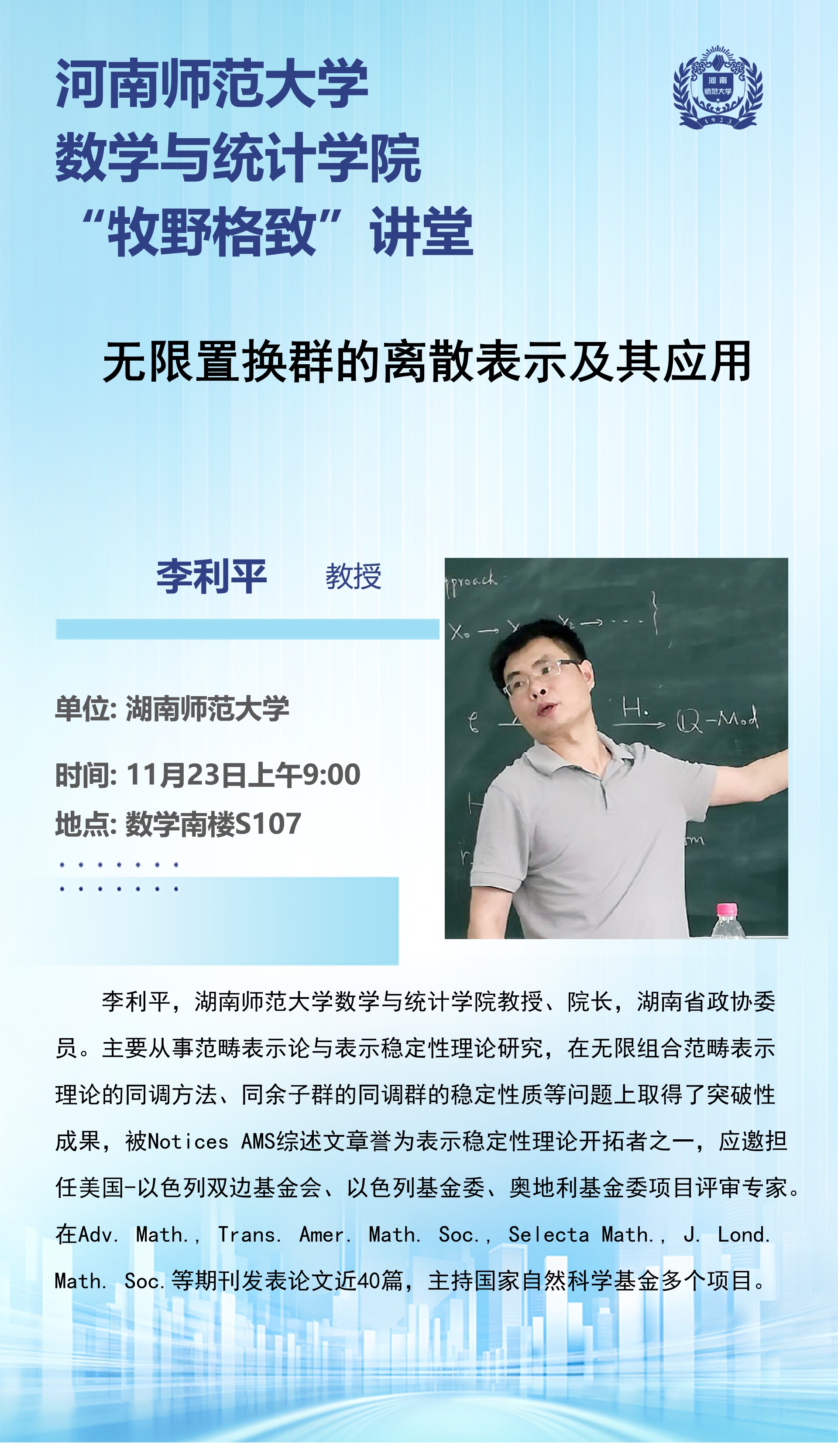 湖南师范大学李利平教授将应邀做客”牧野格致“讲堂