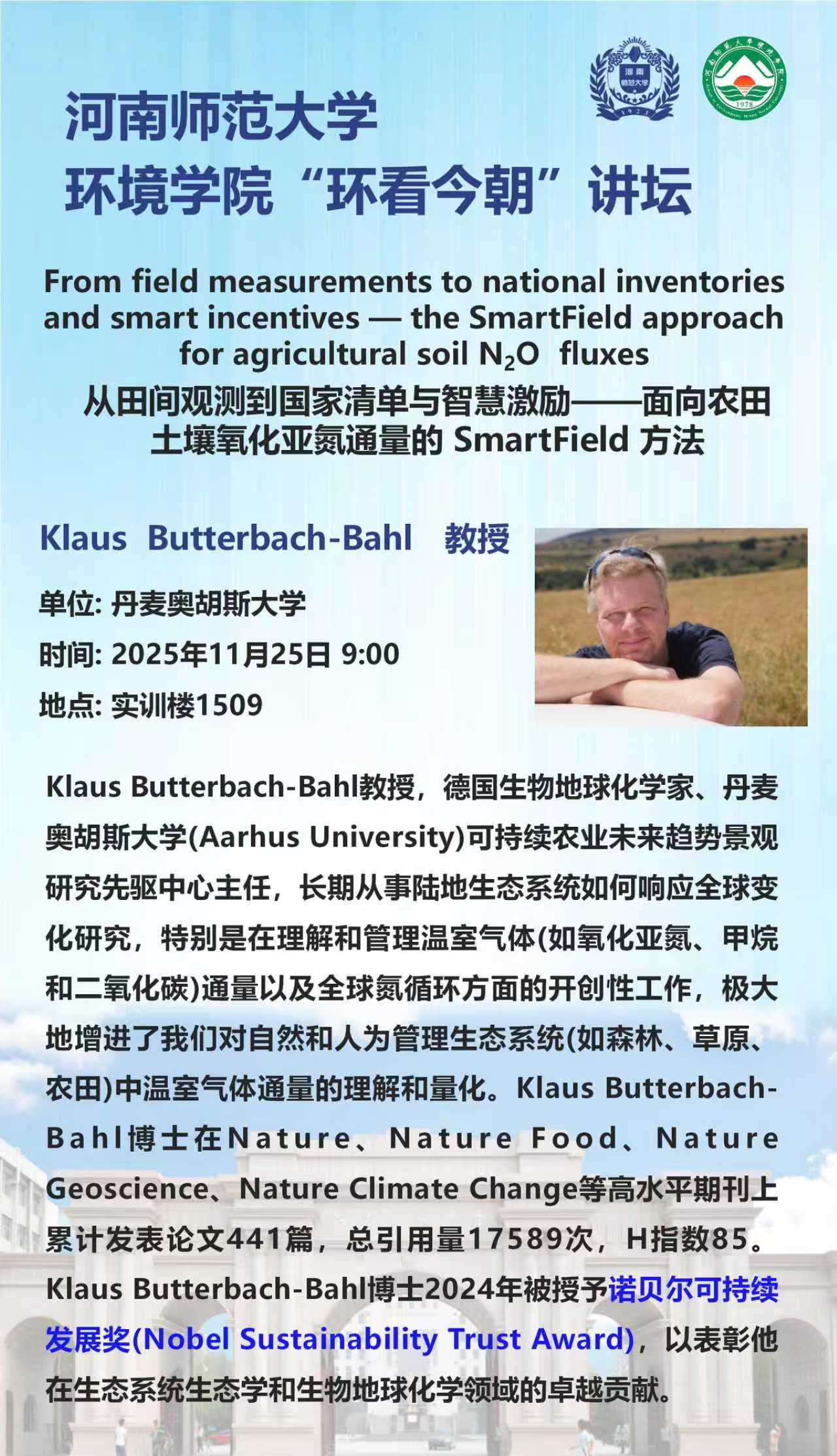 丹麦奥胡斯大学 Klaus Butterbach-Bahl 教授将应邀做客“环看今朝”讲坛