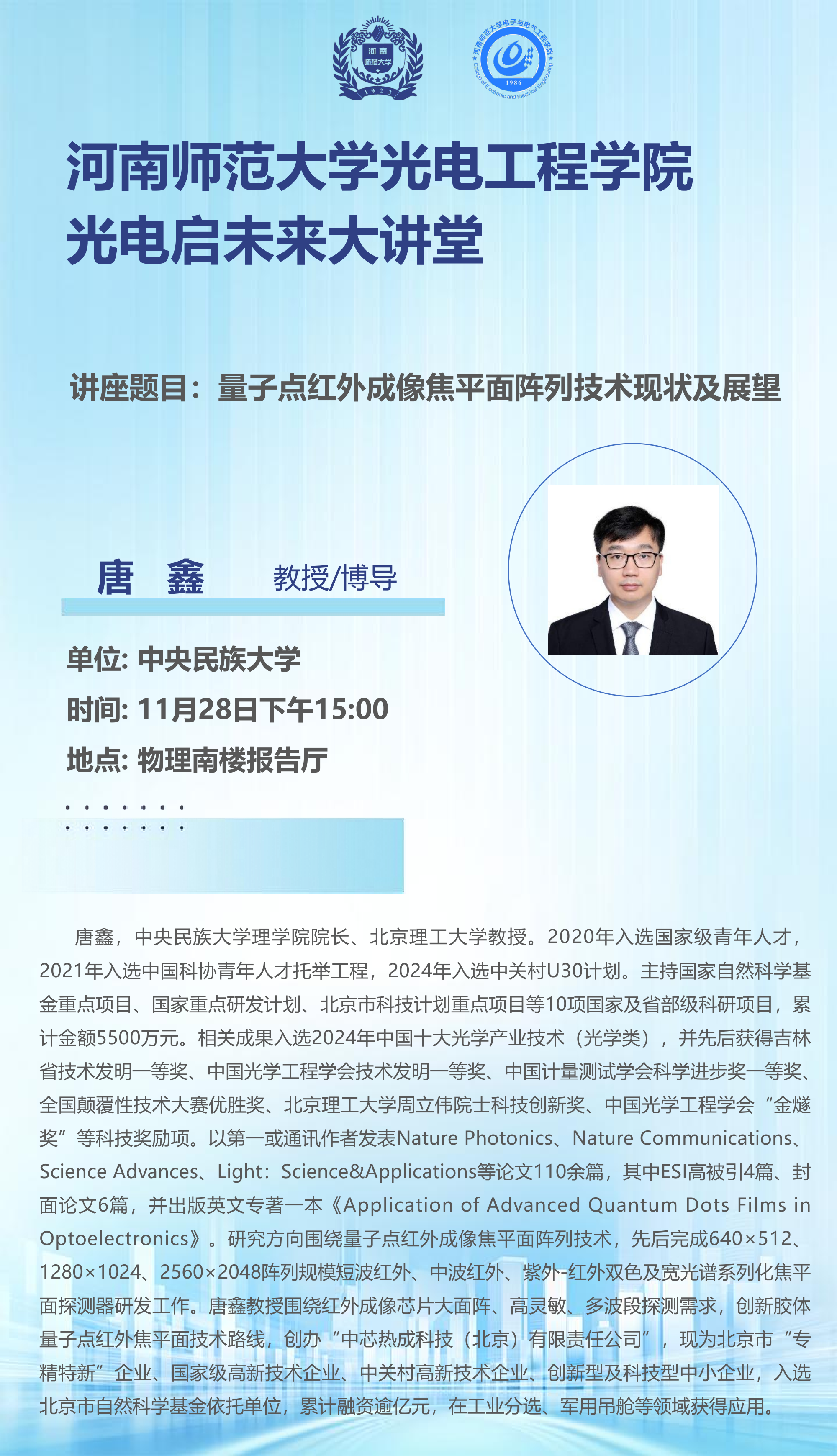 中央民族大学唐鑫教授将应邀做客“光电启未来大讲堂”
