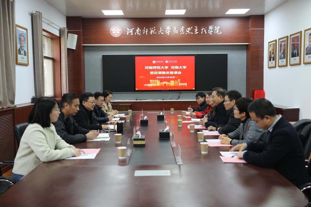 为深入学习贯彻党的二十届四中全会精神,推进思想政治理论课教学改革,11月20日上午,我校与河南大学召开跨校集体备课会。河南大学马克思主义学院原理党支部书记朱格锋、原理教研室主任靳中辉及教师代表,我校马克思主义学院相关负责人、思政课教研室主任代表、思政课教学秘书参加会议。