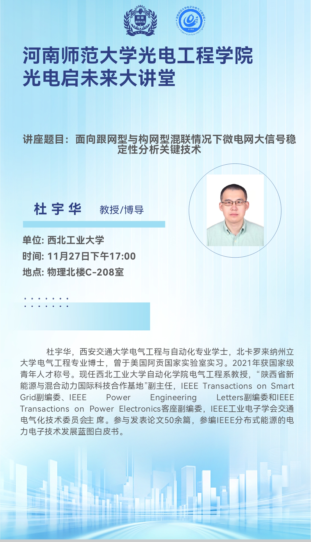 西北工业大学杜宇华教授将应邀做客“光电启未来大讲堂”