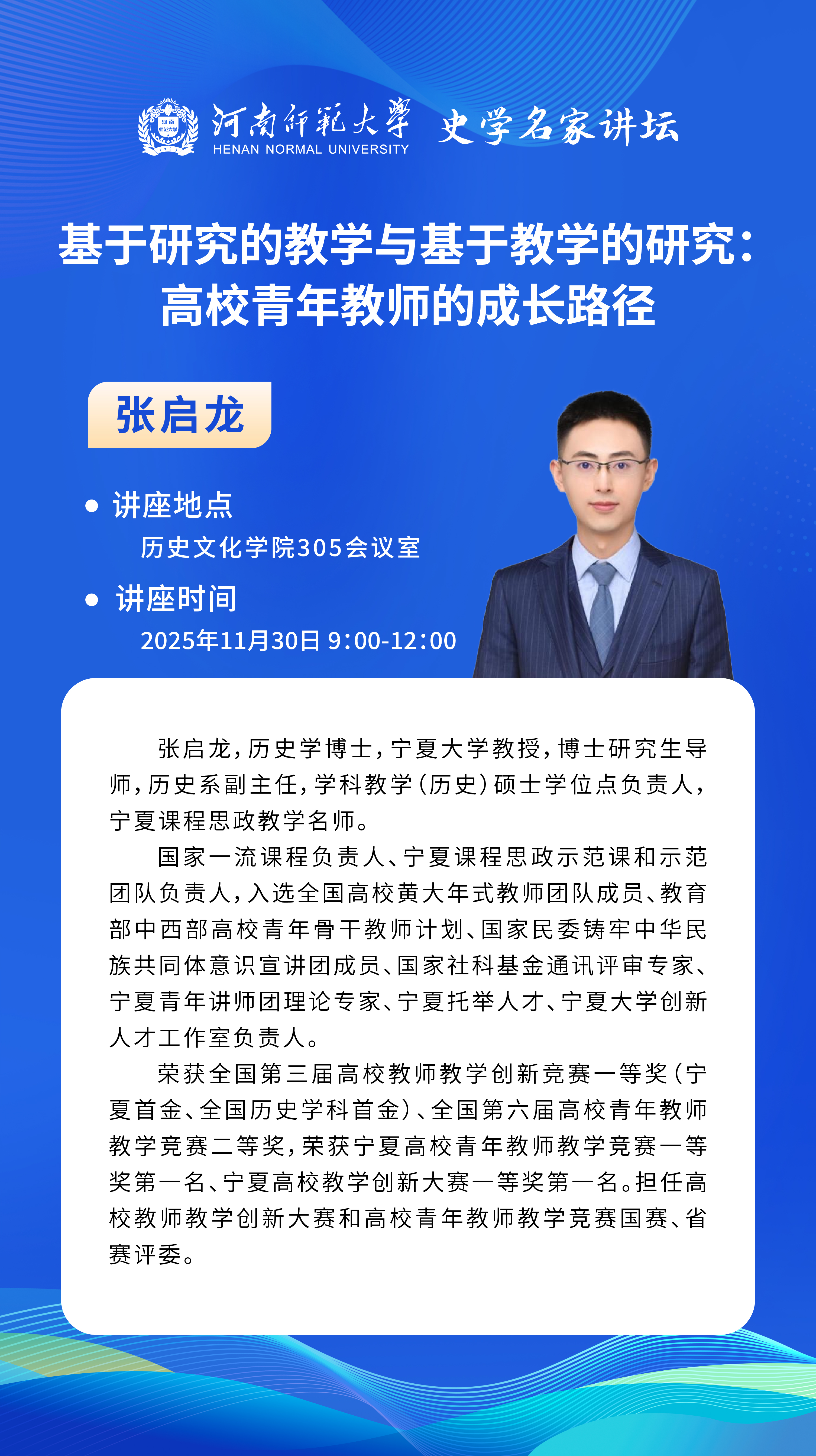 宁夏大学张启龙教授将应邀做客“史学名家讲坛”