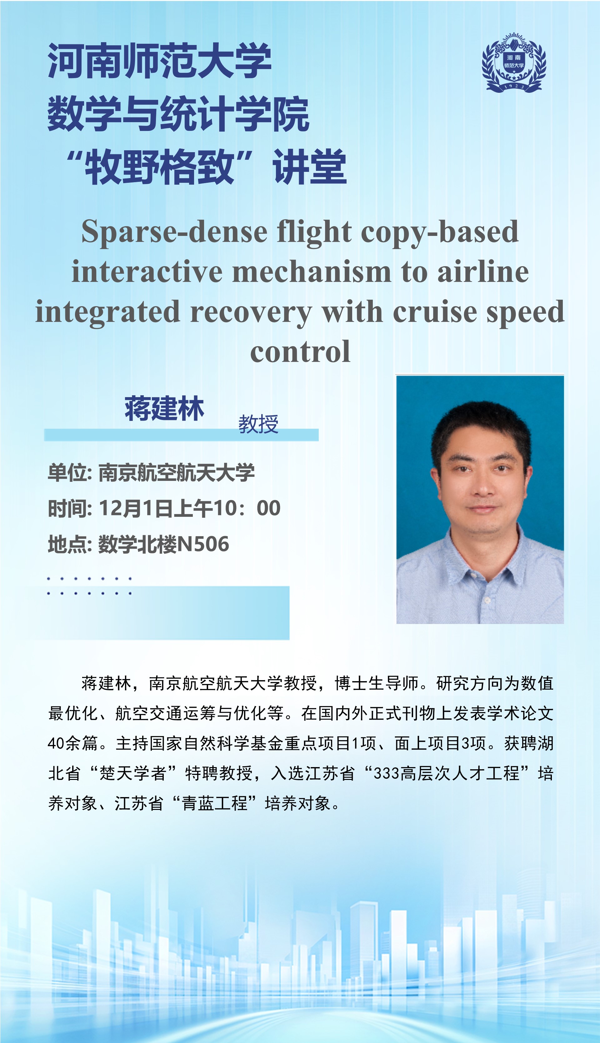 南京航空航天大学蒋建林教授将应邀做客“牧野格致”讲堂