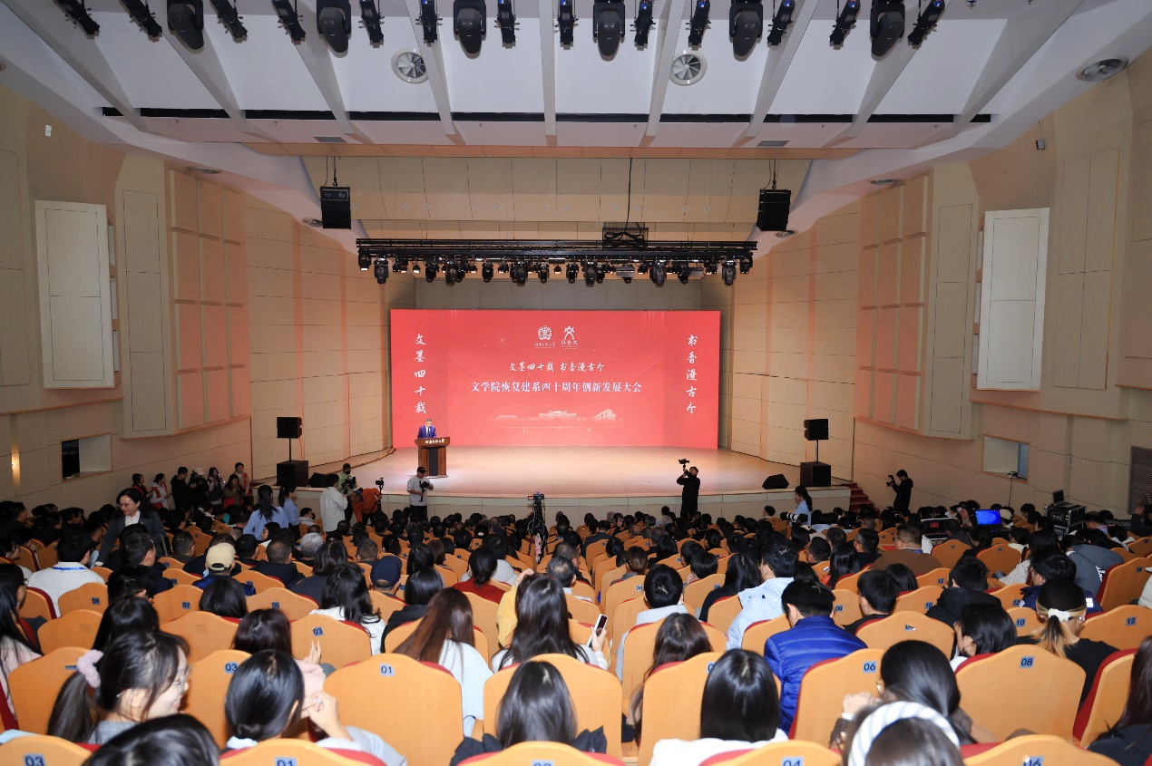11月30日上午,我校在西区帕瓦罗蒂音乐厅举行文学院恢复建系四十周年创新发展大会。校长郭海明出席大会并致辞,校党委副书记秦法跃主持大会。来自全国各地的知名校友欢聚一堂,共同回顾文学院四十年来的光辉历程与丰硕成果,携手擘画未来发展新蓝图。