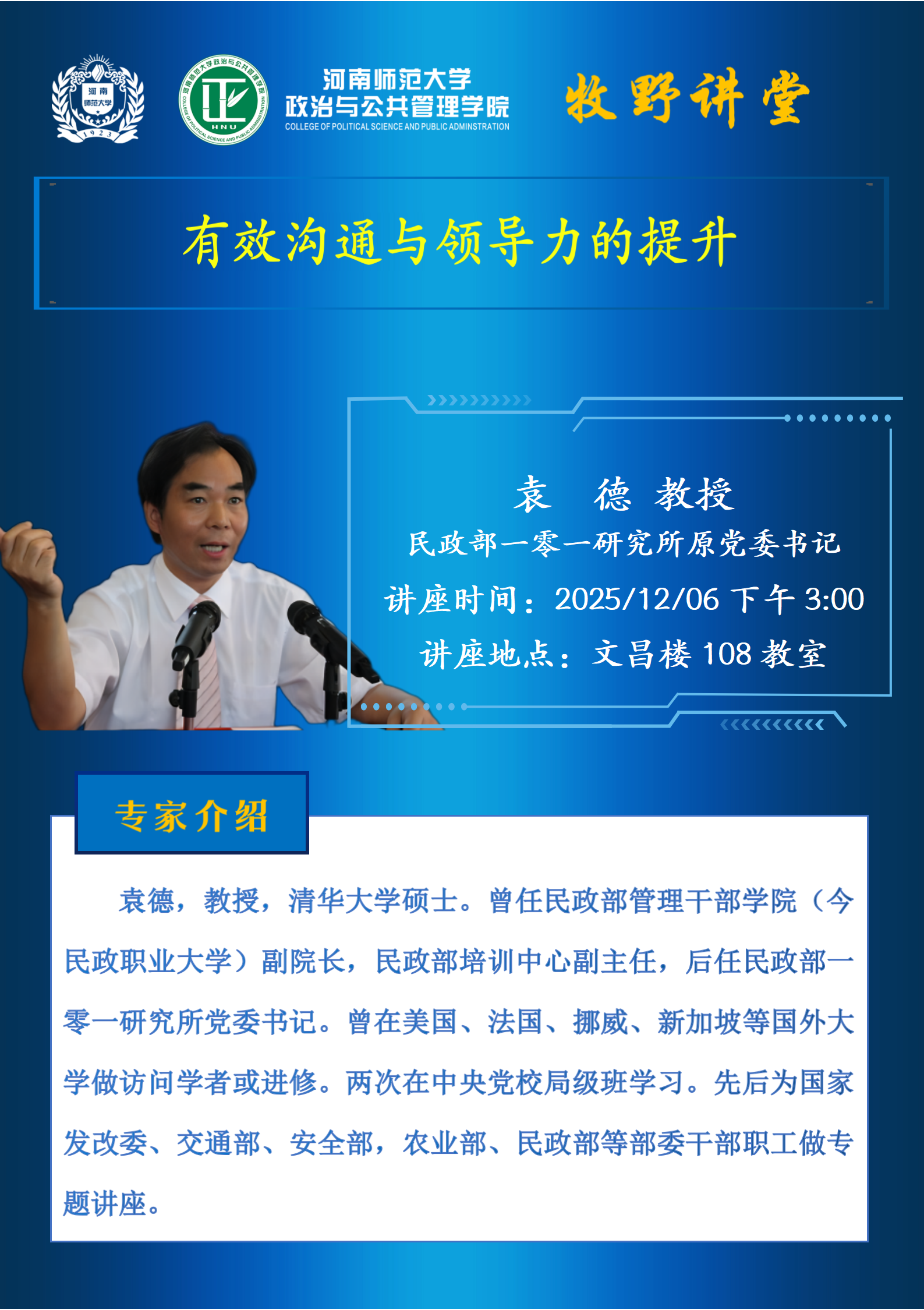 民政部一零一研究所原党委书记袁德教授将应邀做客“牧野讲堂”
