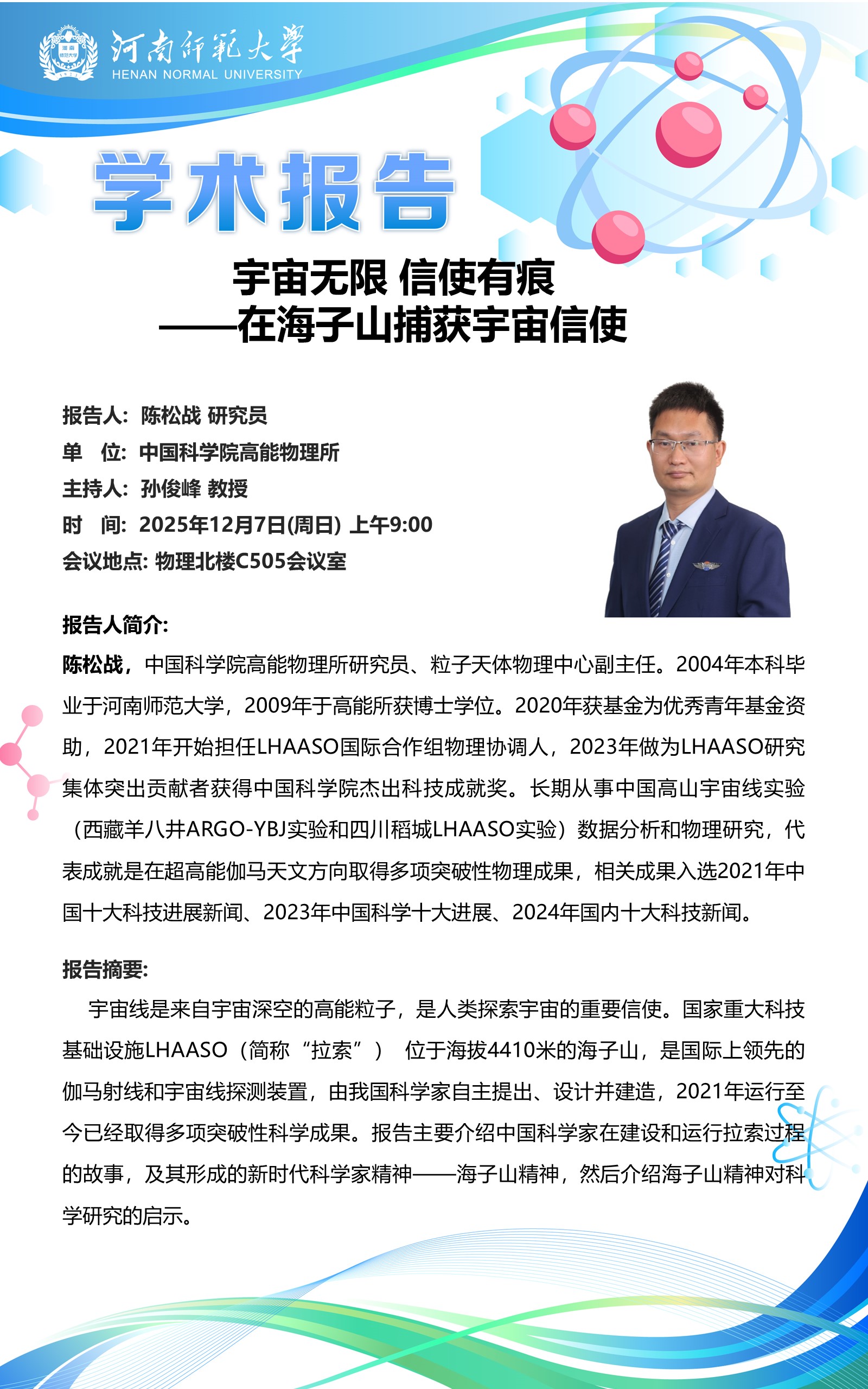 中国科学院高能物理研究所陈松战研究员将应邀做客“八角楼”讲坛