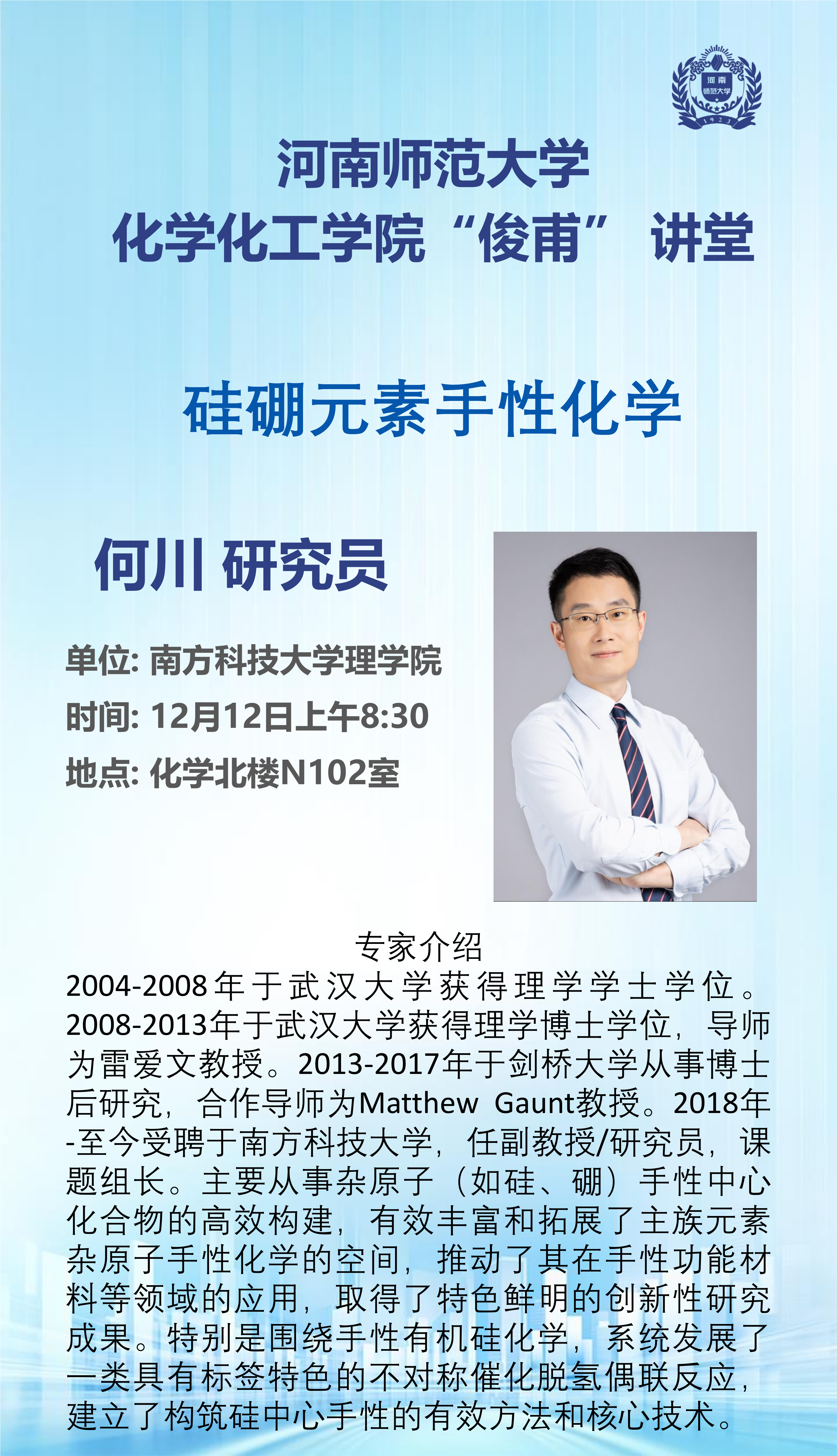 南方科技大学何川研究员将应邀做客“俊甫讲堂”