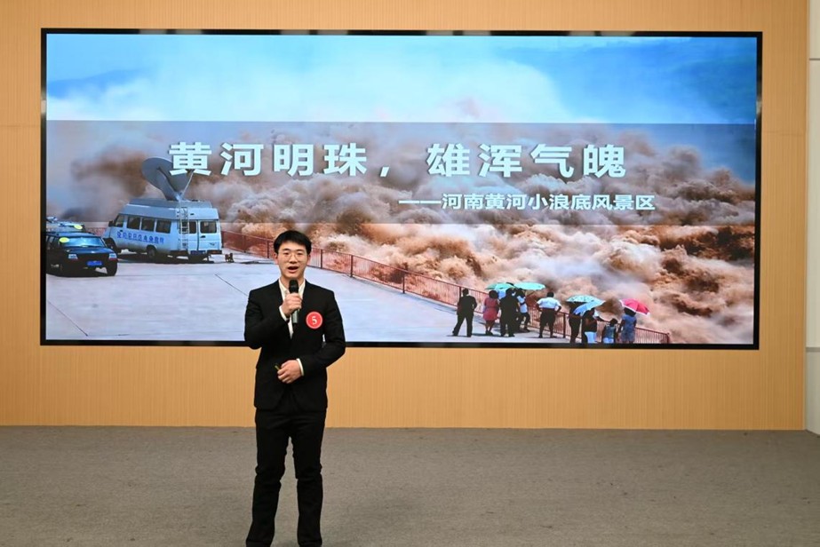 大赛采用初赛—决赛赛制,经过严格选拔,共有九名选手进入决赛。决赛设置笔试—英语介绍—普通话讲解—才艺展示四个环节,全面考察选手的综合素质。赛场上,选手们自信沉稳,PPT制作精致美观,他们以流畅的英文进行自我介绍,并运用生动的语言和扎实的知识储备对河南5A级景区展开讲解。从“龙门石窟石刻纹路里的盛唐”解读历史底蕴,到借“红旗渠的修建历程”诠释奋斗精神,选手们通过互动问答拉近与观众之间的距离,带领大家沉浸式感受文旅的独特魅力。评委们从导游讲解词的创新与深度、贴合游客体验度、彰显时代特色等方面提出建议。