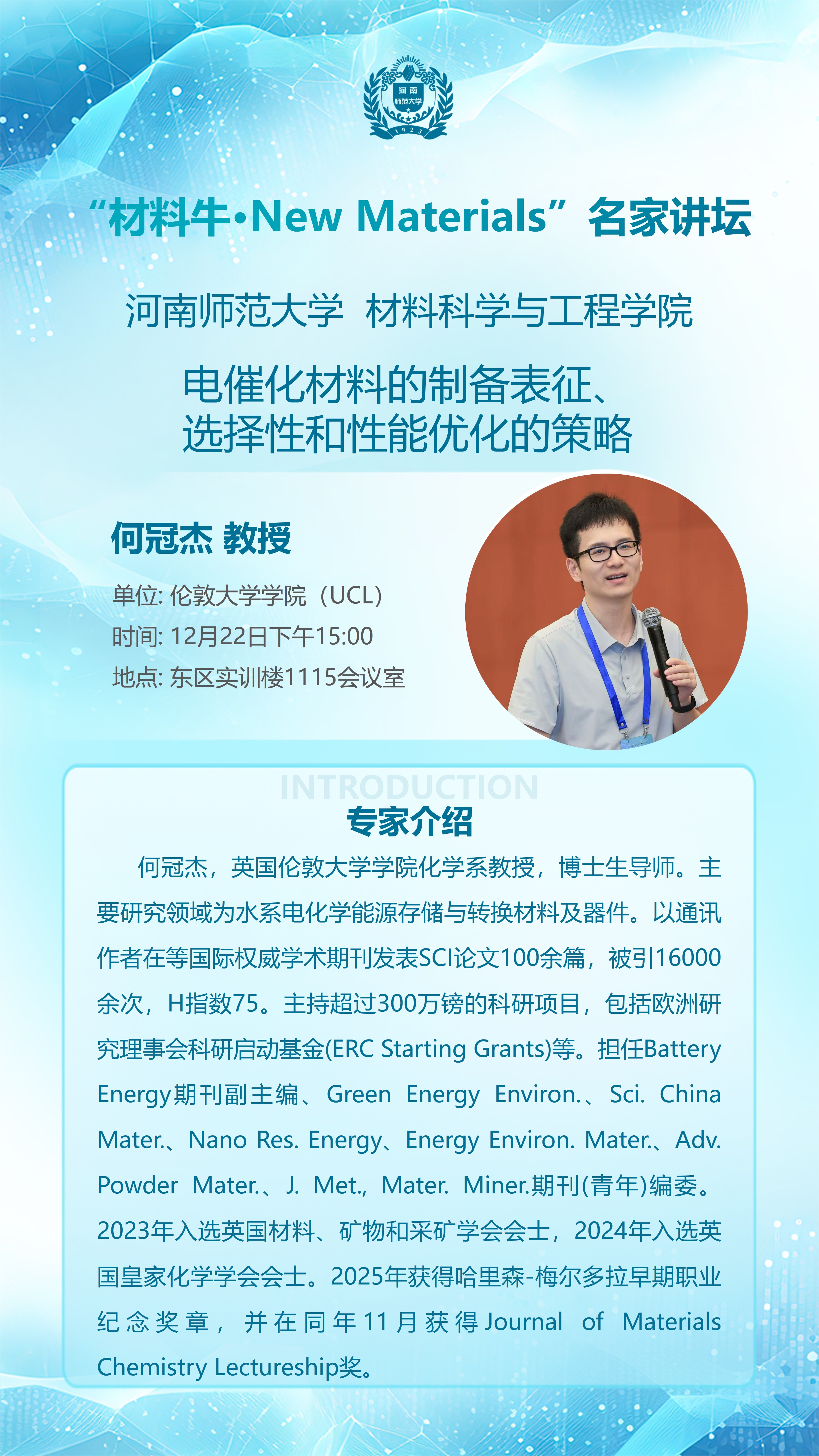 英国伦敦大学学院(UCL)何冠杰教授将应邀做客“材料牛·New Materials”名家讲坛