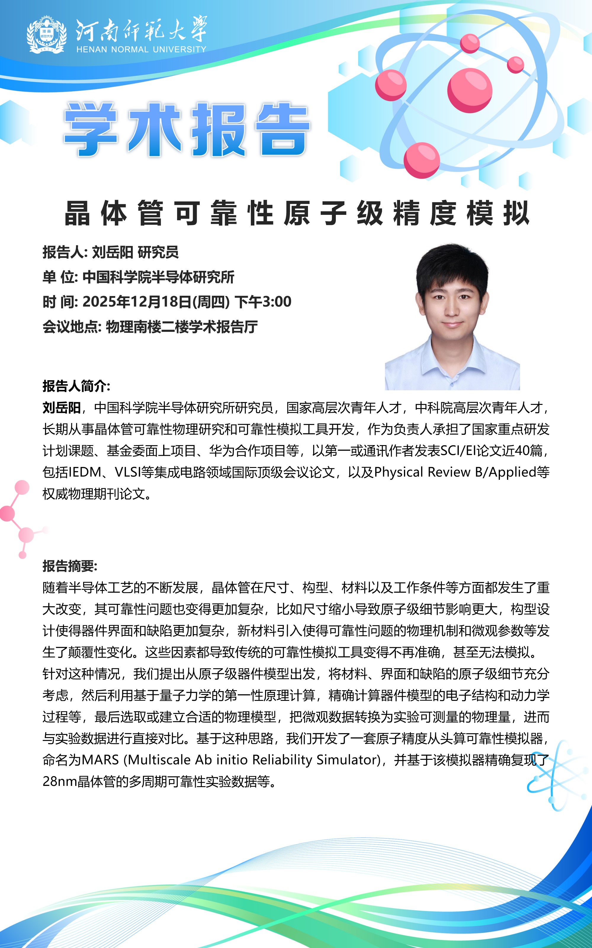 中国科学院半导体研究所刘岳阳研究员将应邀做客“八角楼”讲坛