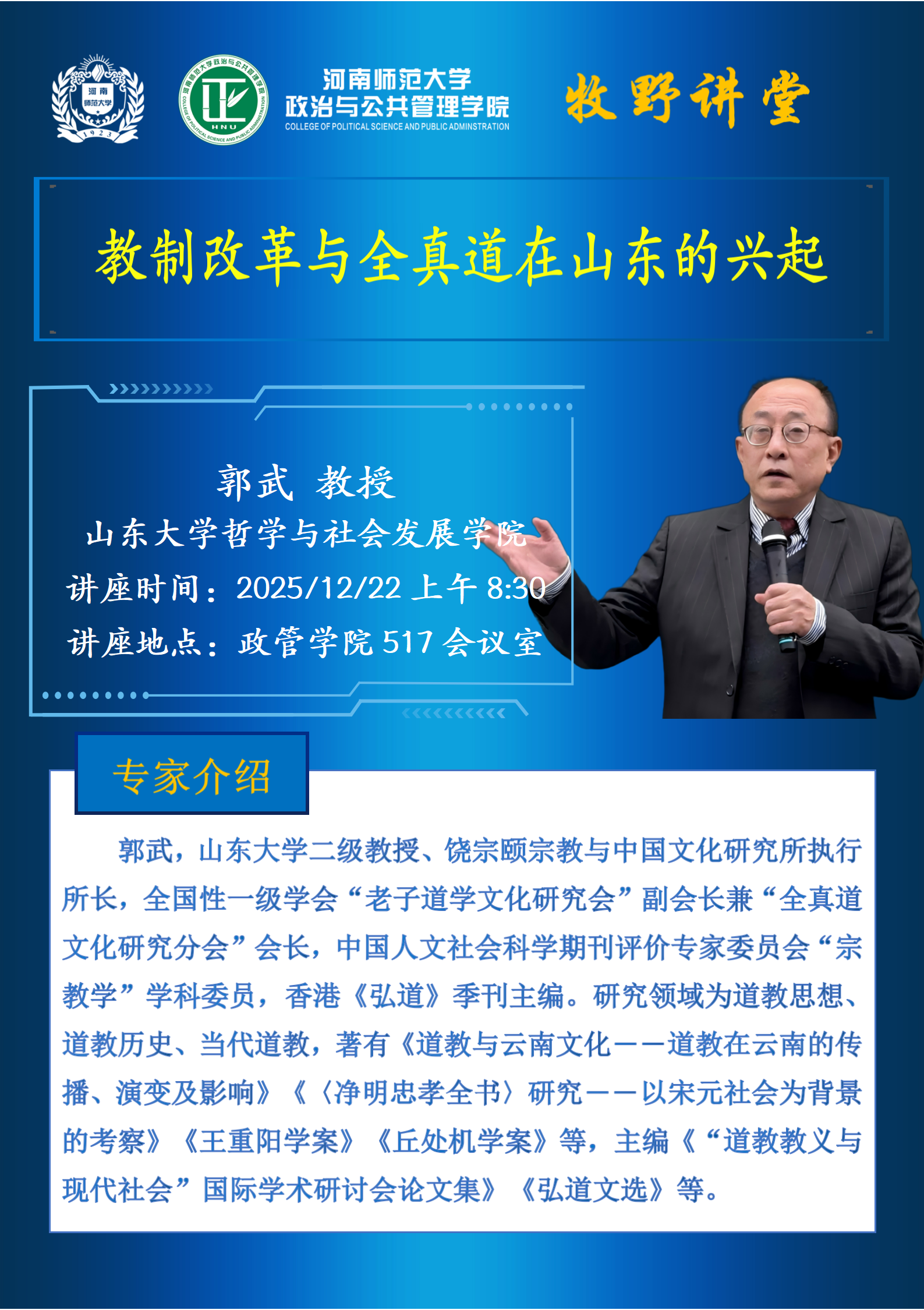 山东大学郭武教授将应邀做客“牧野讲堂”