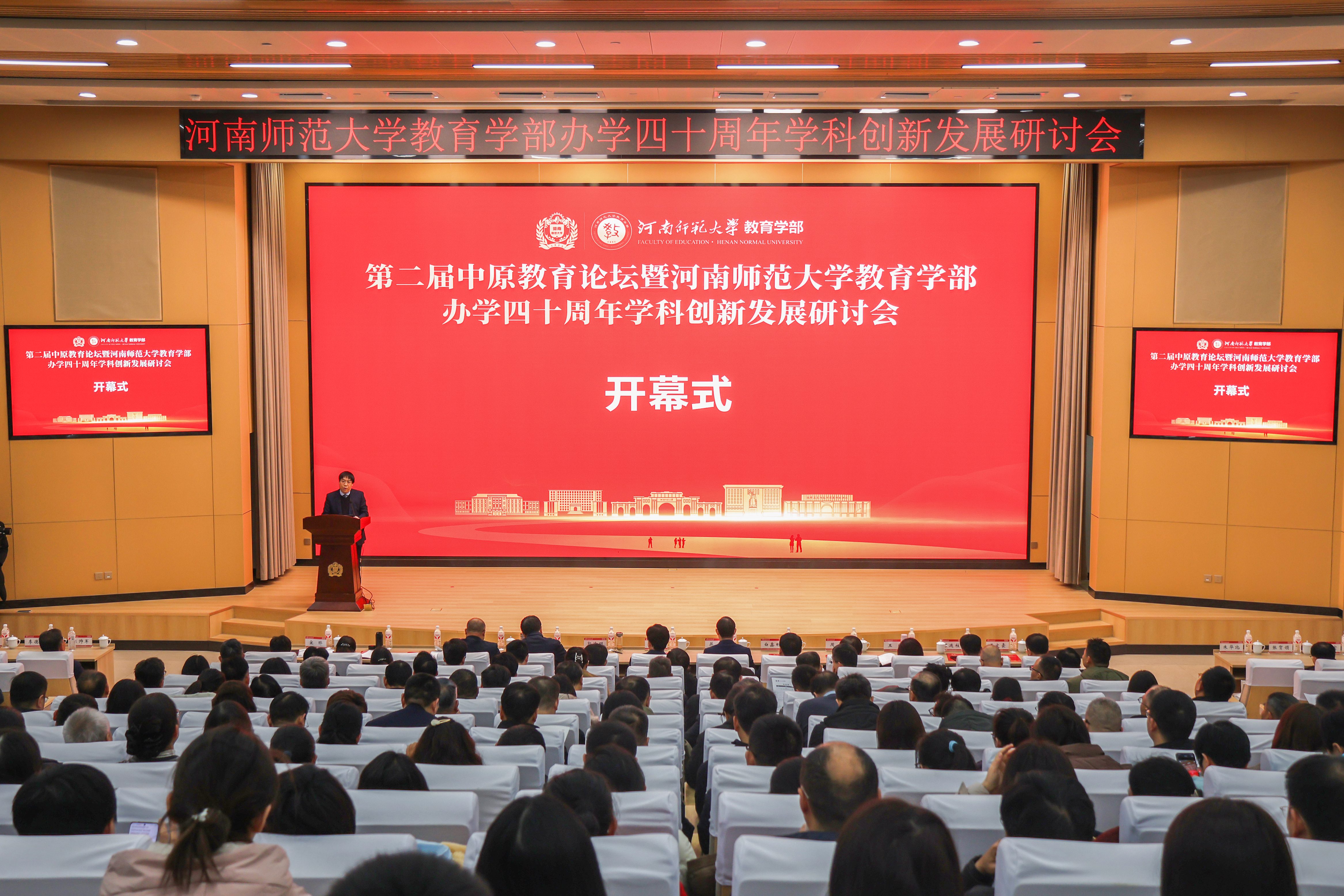 四十年初心不改,新征程再谱新篇。12月27日,第二届中原教育论坛暨河南师范大学教育学部办学四十周年学科创新发展研讨会在我校举行。河南省教育厅原厅长郑邦山,河南师范大学校长郭海明,北京大学教育学院院长蒋凯,河南工业大学党委书记、河南大学教育学部部长刘志军出席大会并致辞。参加会议的还有国内教育学领域的专家学者、省内外兄弟院校教育学院(部)院(部)长、离退休教师代表、往届班子成员代表、学部校友代表、师生代表等。河南师范大学副校长宋晔主持大会。