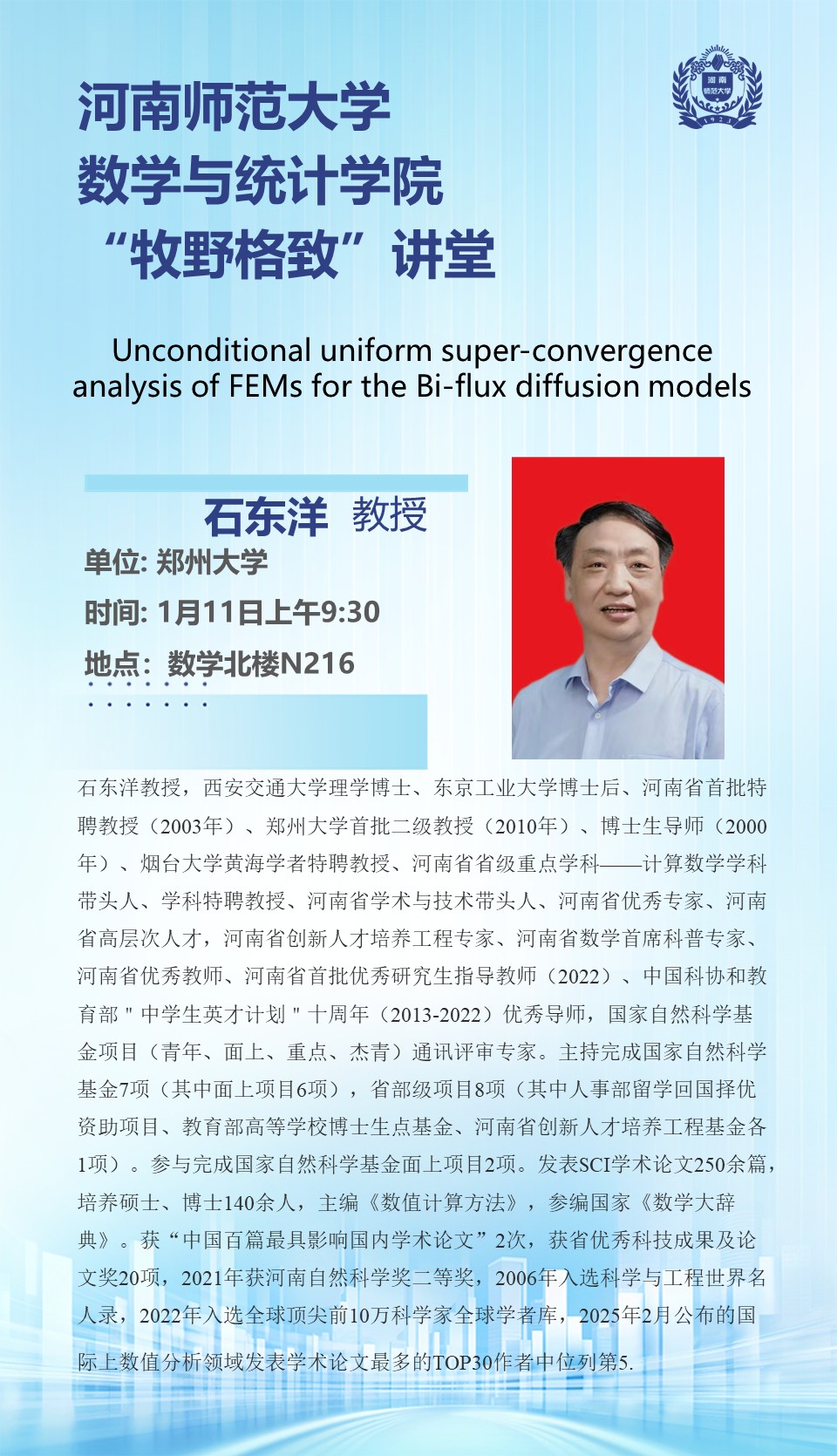郑州大学石东洋教授将应邀做客“牧野格致”讲堂