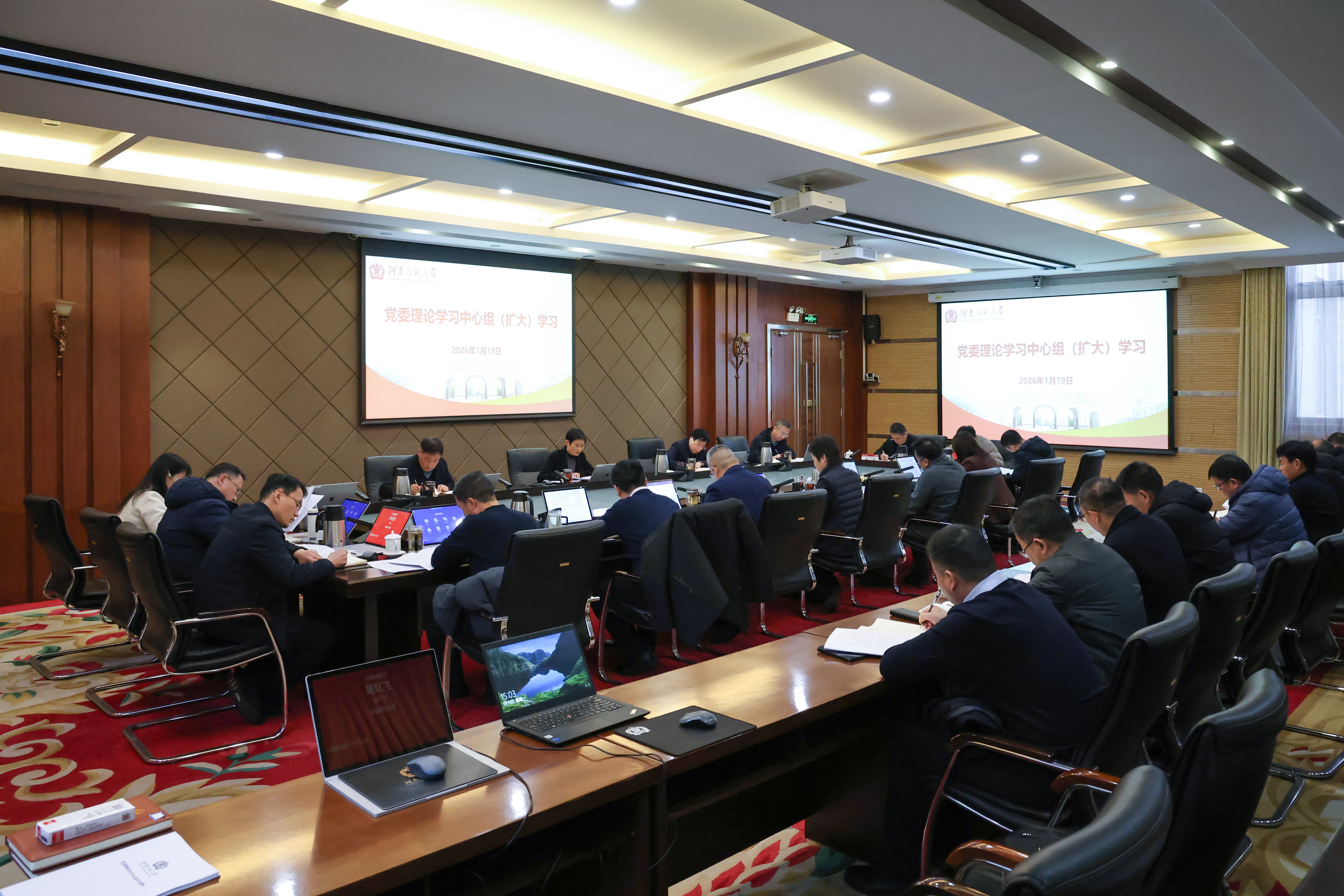 1月19日下午,我校在勤政楼第三会议室召开党委理论学习中心组(扩大)学习会,专题学习习近平总书记重要文章和党中央重要会议精神。校党委书记冯淑霞主持会议并讲话,校领导、党委委员、纪委委员参加学习。