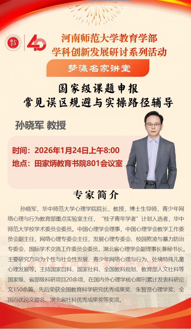 华中师范大学孙晓军教授将应邀做客“梦瀛名家讲堂”