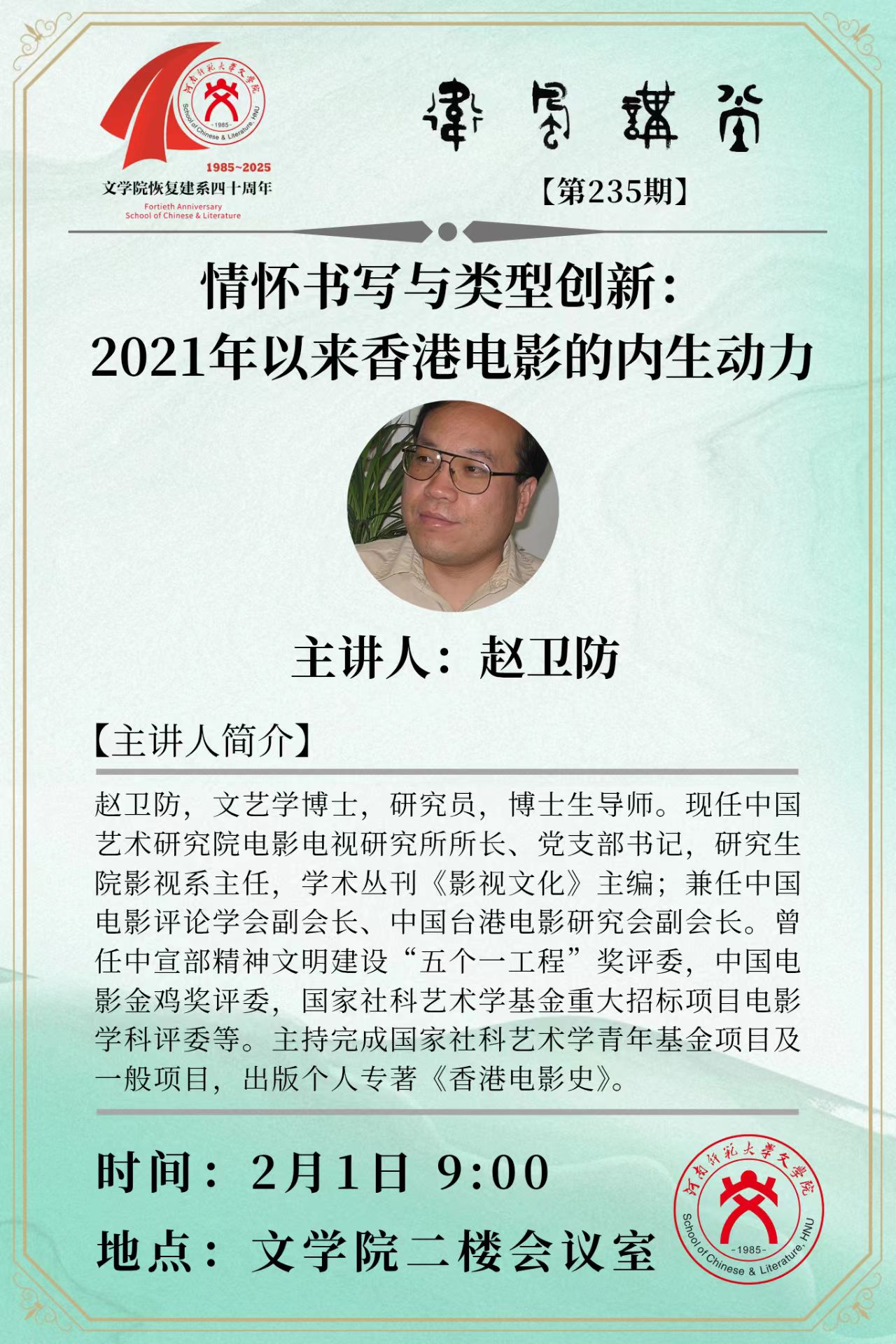 中国艺术研究院赵卫防教授将应邀做客文学院“卫风讲堂”
