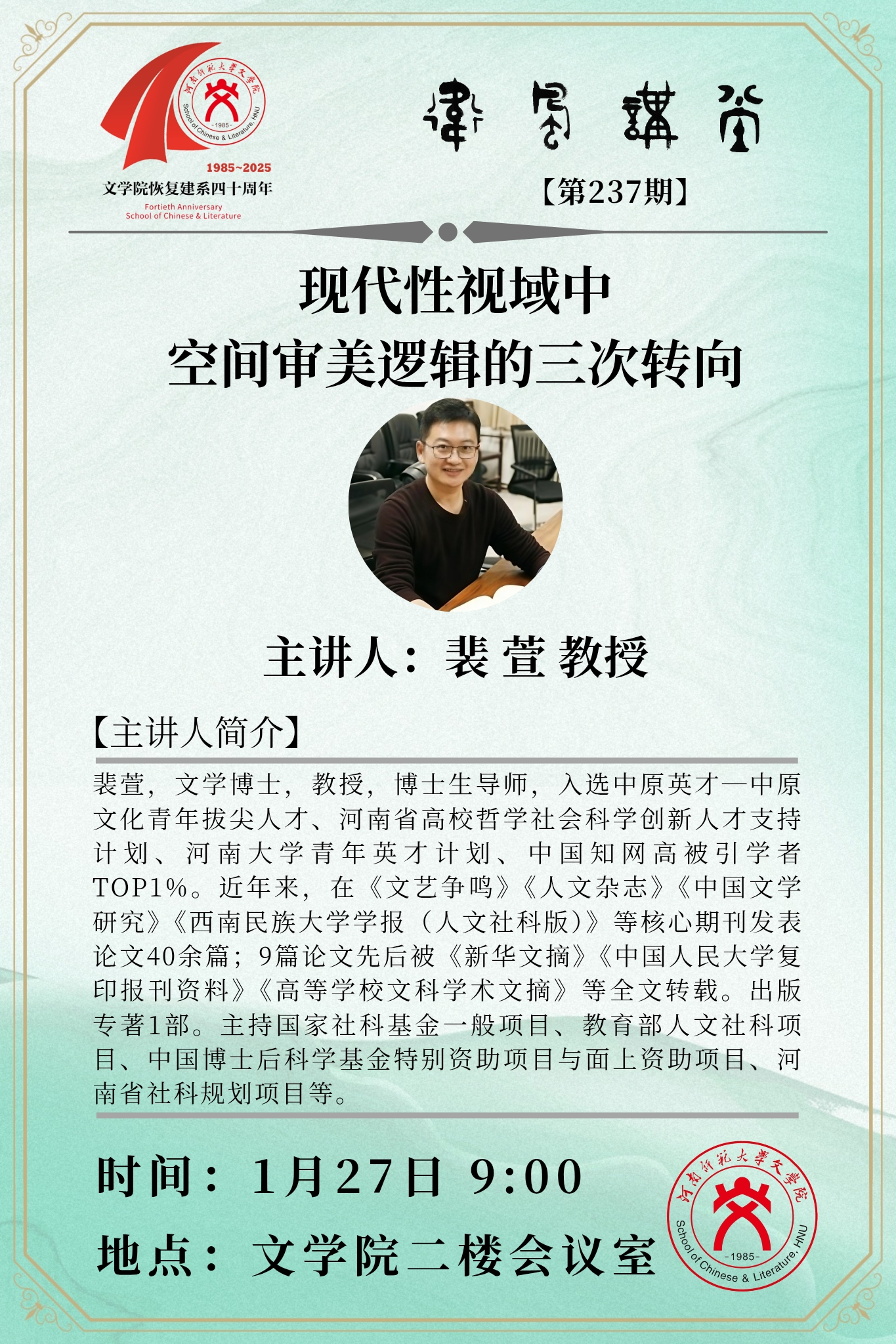 河南大学裴萱教授将应邀做客文学院“卫风讲堂”