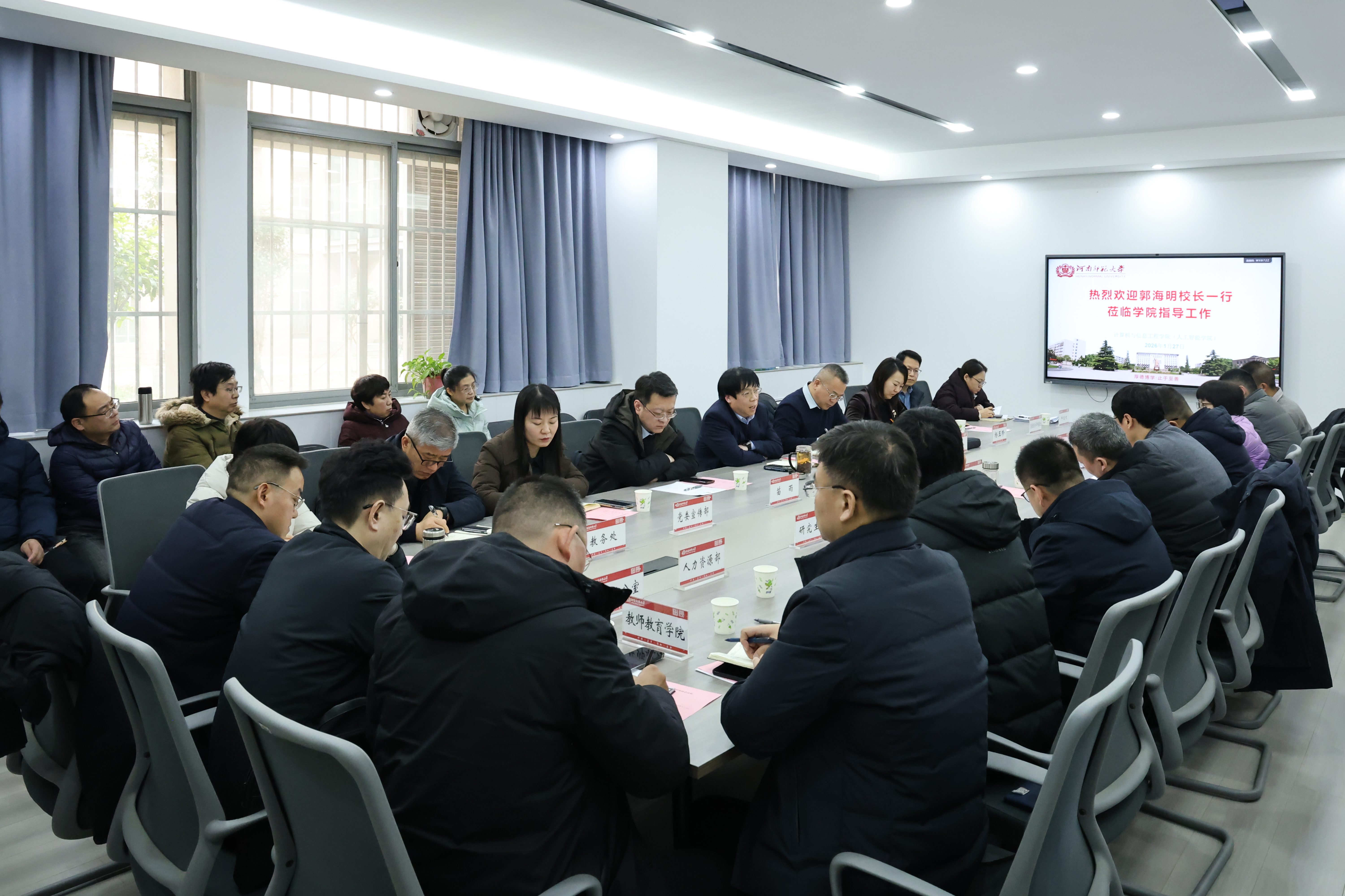1月27日上午,校长郭海明,副校长聂国兴、苗雨、杨玉珍到计算机与信息工程学院(人工智能学院)调研指导工作。党政办公室、党委宣传部、人力资源部、发展规划与学科建设处、教务处、科技处、社会科学处等相关职能部门负责人陪同调研,计算机与信息工程学院(人工智能学院)领导班子全体成员、科级干部、教师代表参加。会议由聂国兴主持。