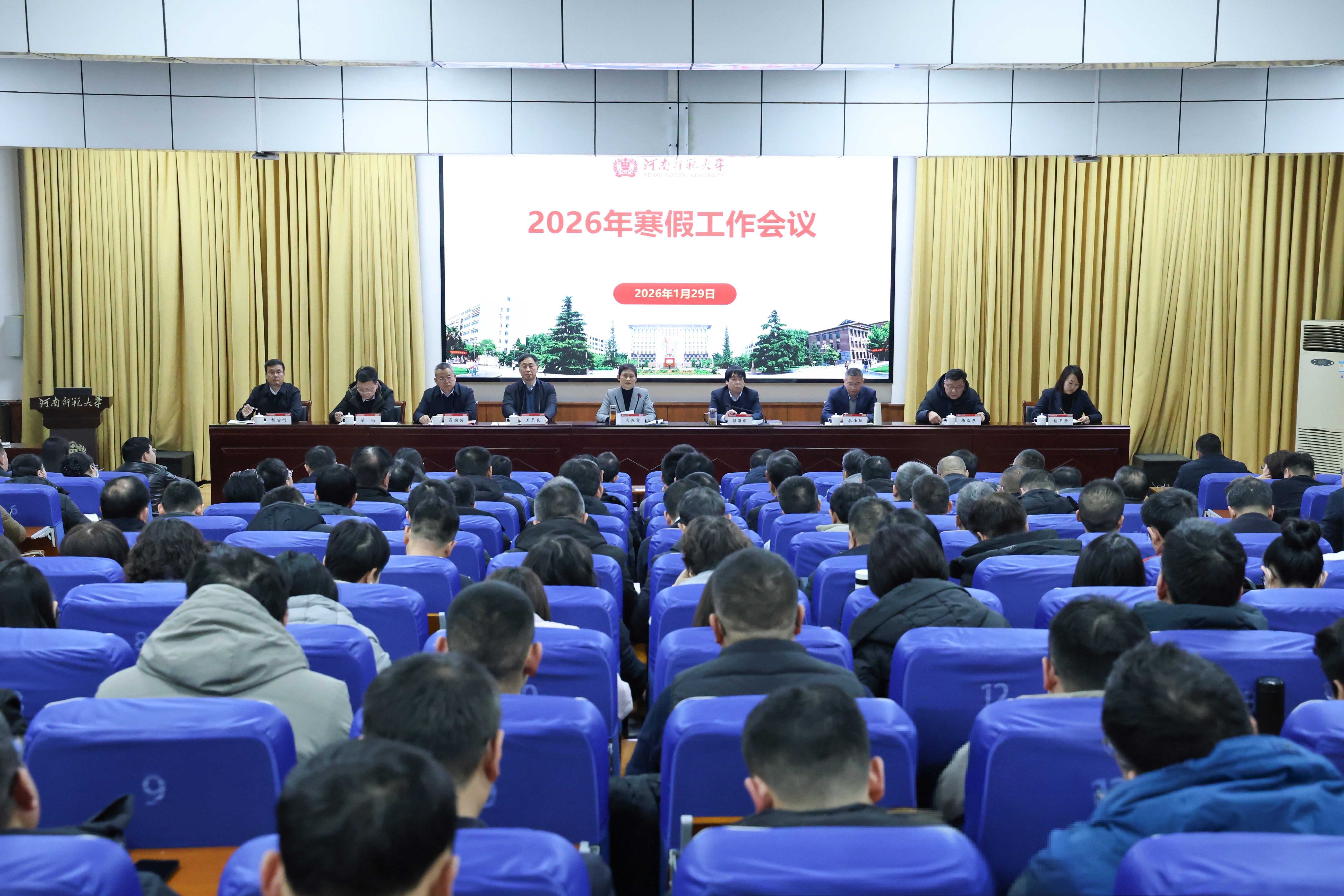 1月29日下午,学校2026年寒假工作会议在新五四四楼党校教室召开。校领导冯淑霞、郭海明、王玉良、秦法跃、聂国兴、杨亚东、苗雨、杨玉珍、杨宝刚出席会议,全体处级干部参加会议。会议由校长郭海明主持。