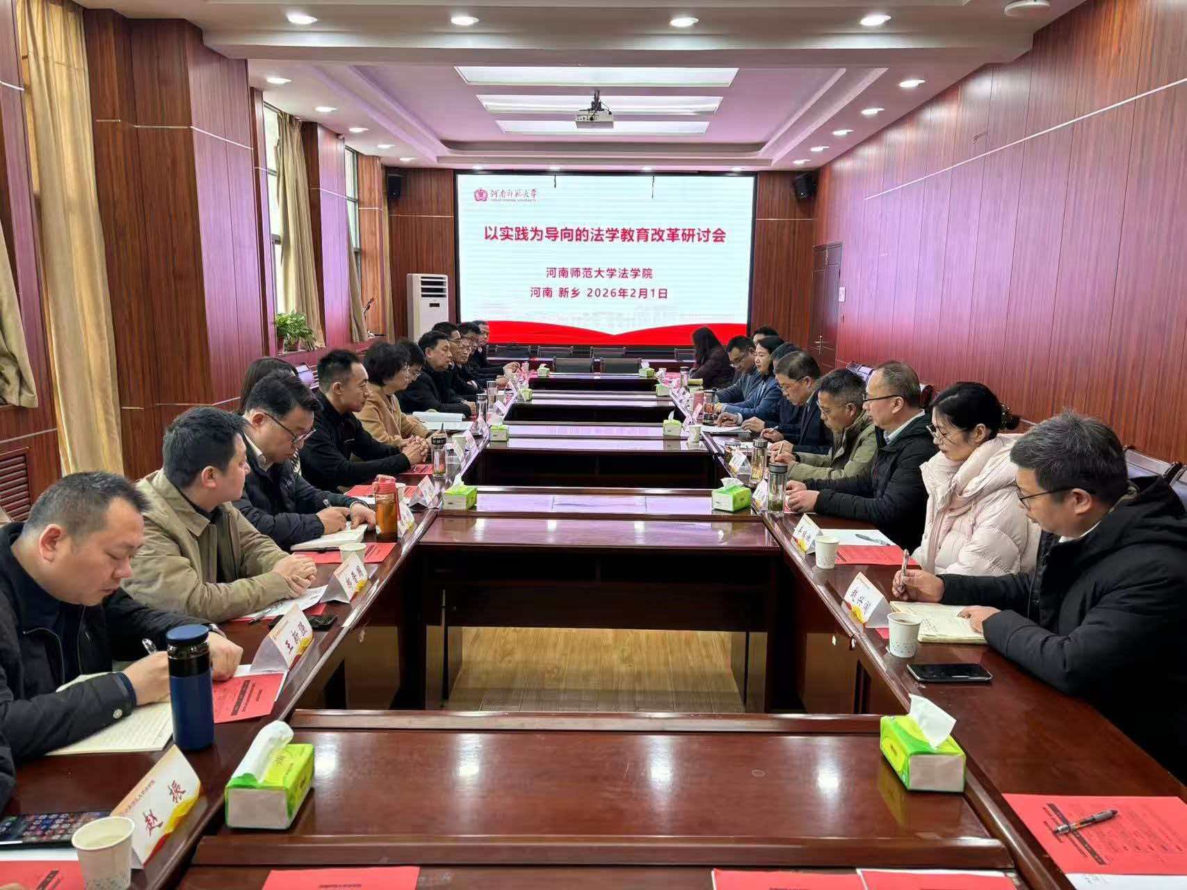 2月1日上午,法学院在崇法楼301会议室举办“以实践为导向的法学教育改革研讨会”。来自法院、检察院、司法行政机关、律师事务所等实务部门的实习基地代表与学院师生齐聚一堂,共话法学教育高质量发展之路。会议由法学院副院长胡光主持。