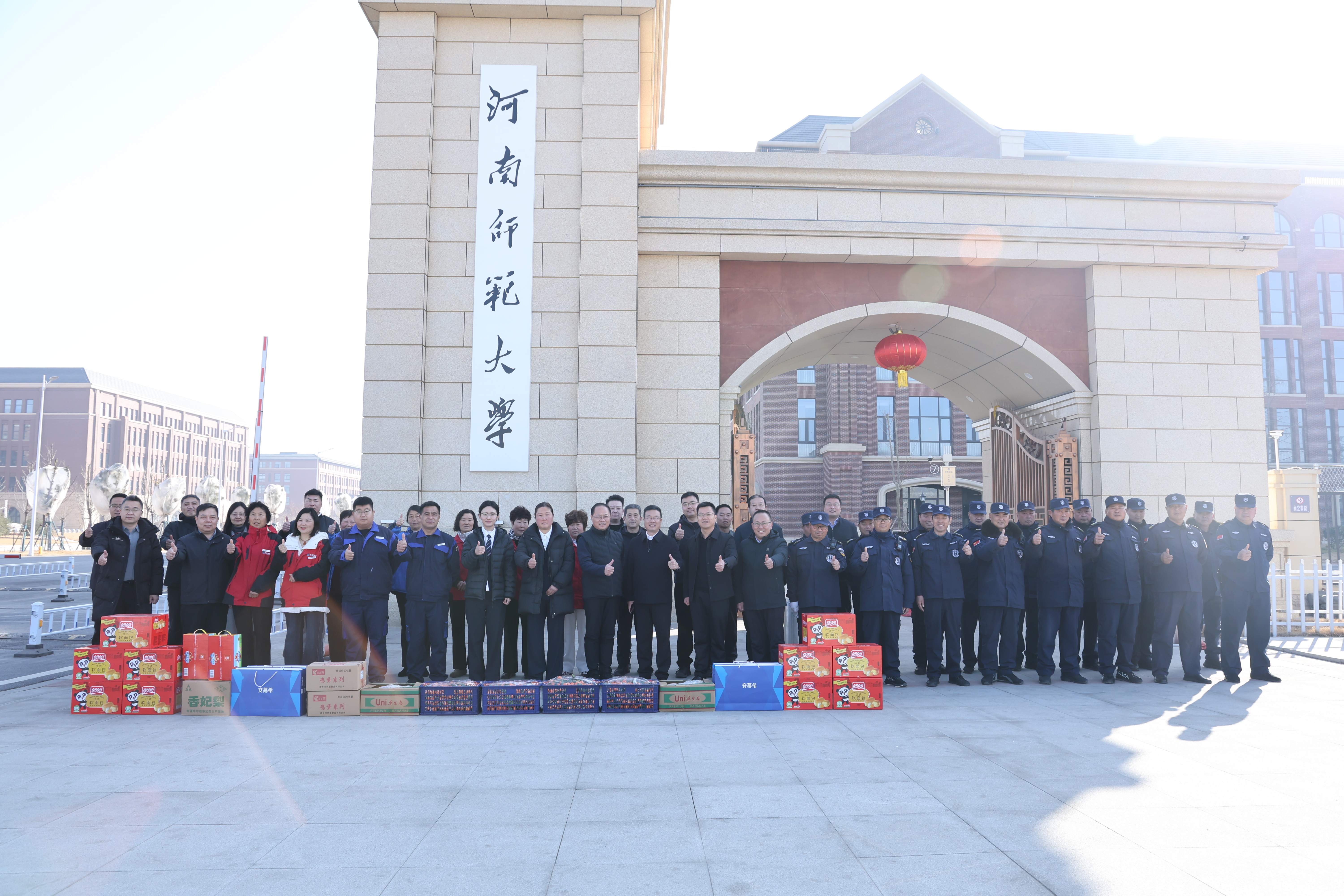 苗雨带队到建设路校区看望慰问外籍教师,送上新春祝福和慰问品,并赴平原湖校区走访慰问春节期间坚守岗位的一线教职工。杨宝刚带队走访慰问河南师范大学附属中学、校医院及科技创新港校区师生,向坚守岗位的职工和留校师生致以节日问候和美好祝愿。