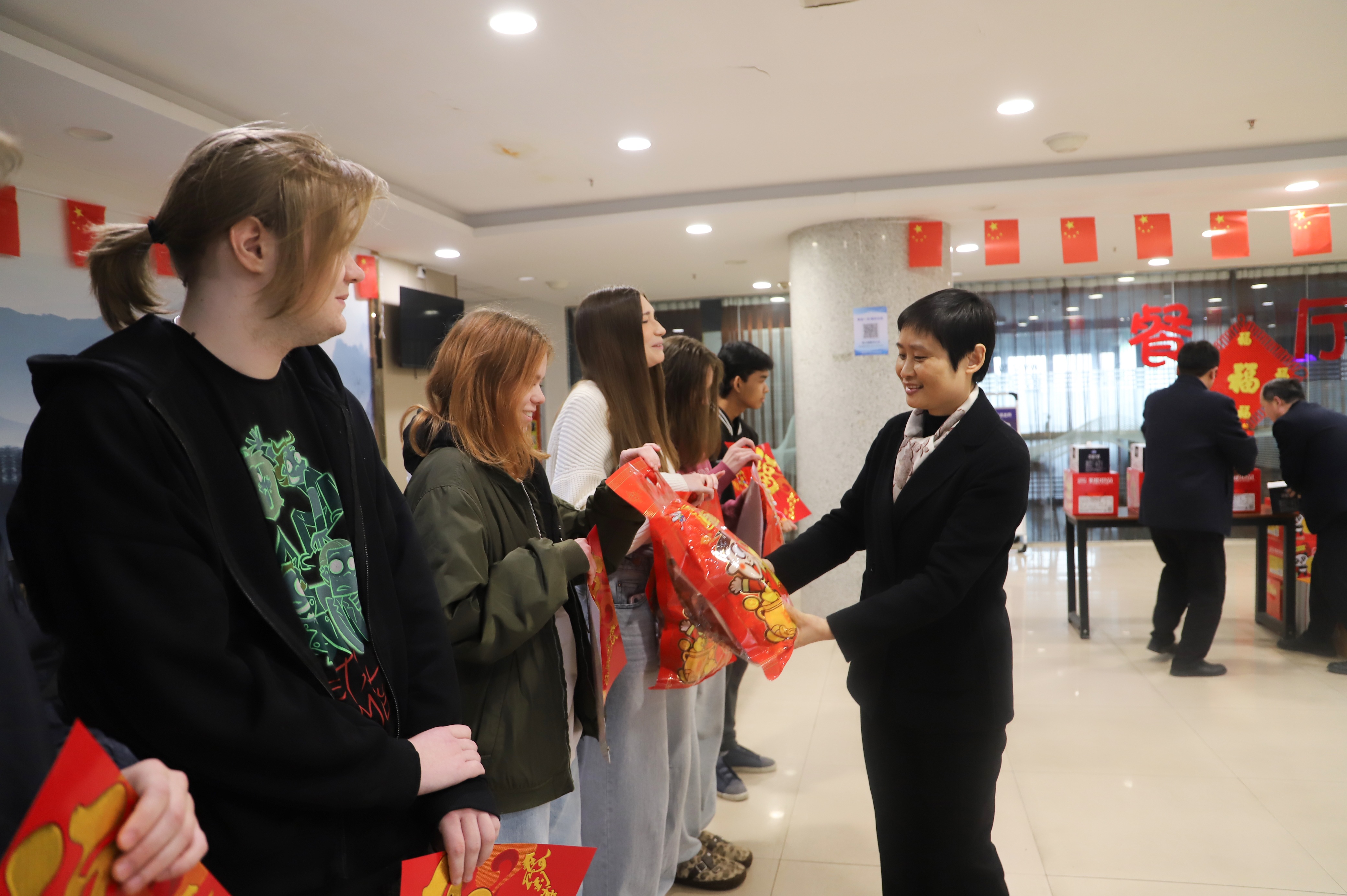 在实验室和宿舍,冯淑霞亲切看望了留校学生,认真了解大家留校期间的学习科研进展、生活保障、饮食起居与节日安排,叮嘱大家增强安全意识,注意人身安全、消防安全和用电安全,合理安排假期生活和学习计划。她还为留校学生送上春节礼包等慰问品,传递学校的关心关爱,让大家在校园中感受到浓浓的节日氛围和家的温暖。