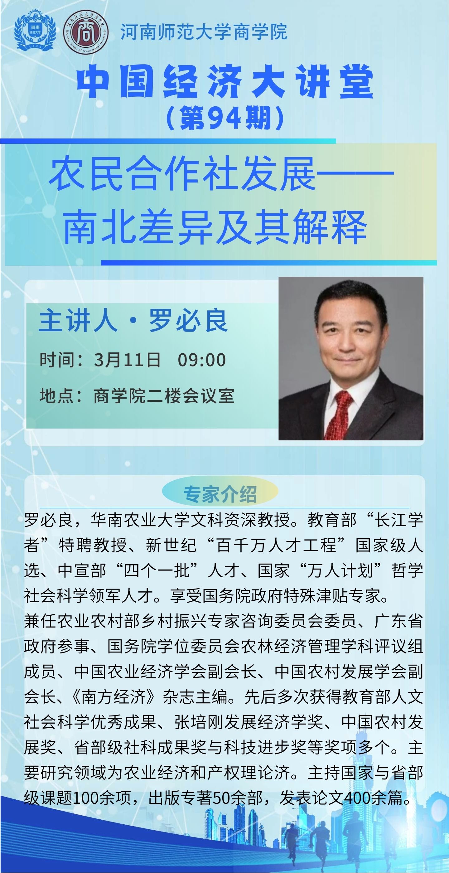 华南农业大学罗必良教授将应邀做客“中国经济大讲堂”