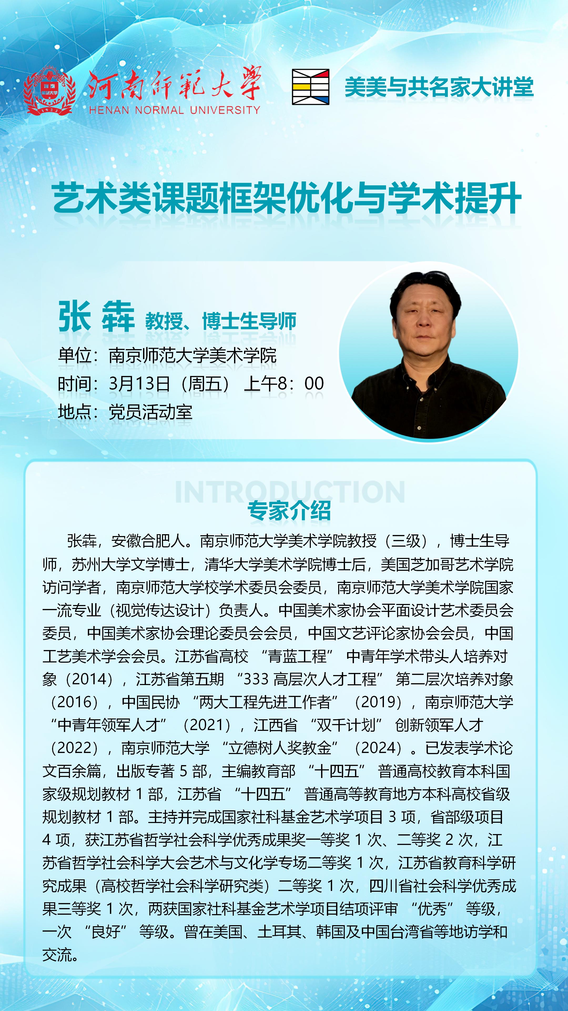 南京师范大学张犇教授将应邀做客“美美与共”名家大讲堂