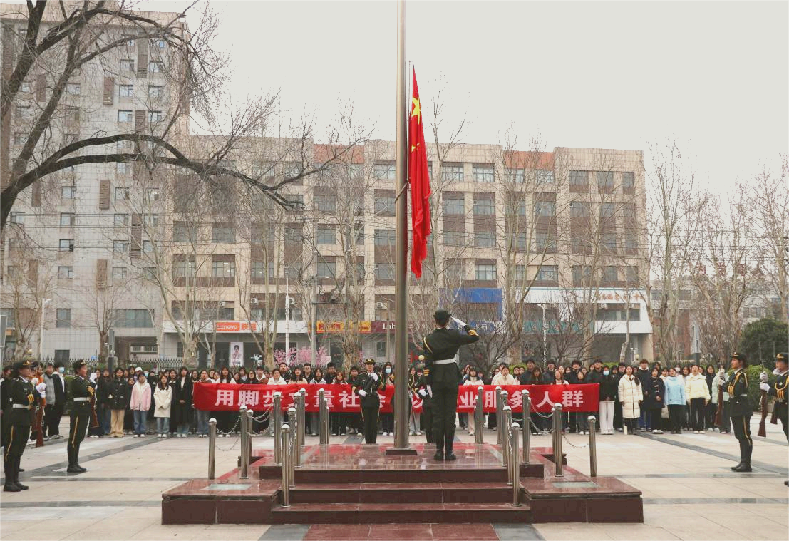 3月16日清晨,社会学院在勤政楼前国旗广场举行升旗仪式暨国旗下爱国主义教育思政课。党委学工部副部长、学生中心副主任赵焕兴,社会学院党委书记瞿洪明、党委副书记何欢及师生代表参加。升旗仪式由何欢主持。