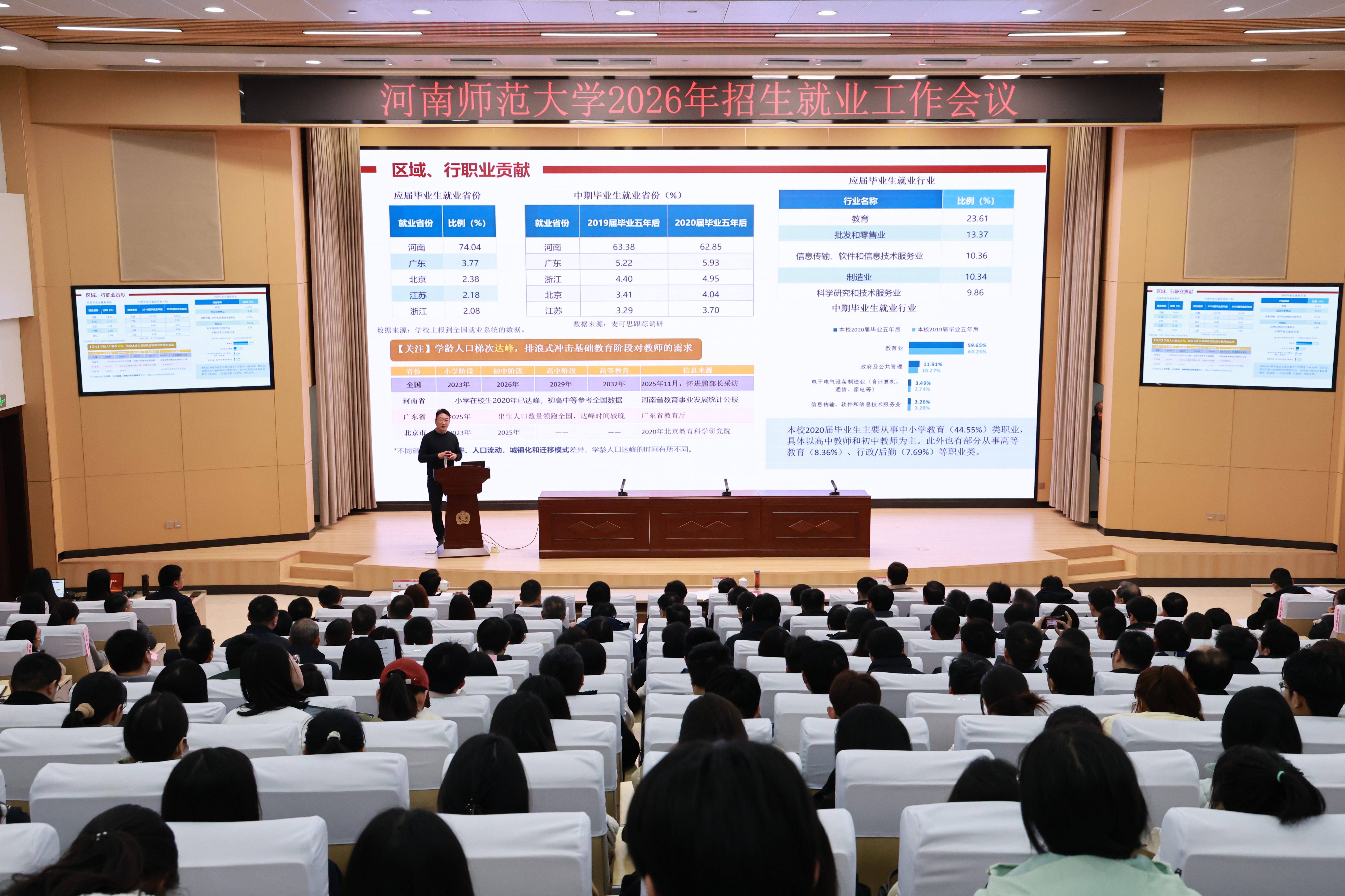 会上,麦可思区域总监王寅解读了《河南师范大学2025届毕业生就业质量年度报告》《河南师范大学2020届毕业生中期发展与培养达成报告》。招生就业处处长康海军宣读了《2026年招生宣传工作实施方案》《2026届毕业生就业创业工作实施方案》,光电工程学院和商学院分享了招生就业工作典型经验。