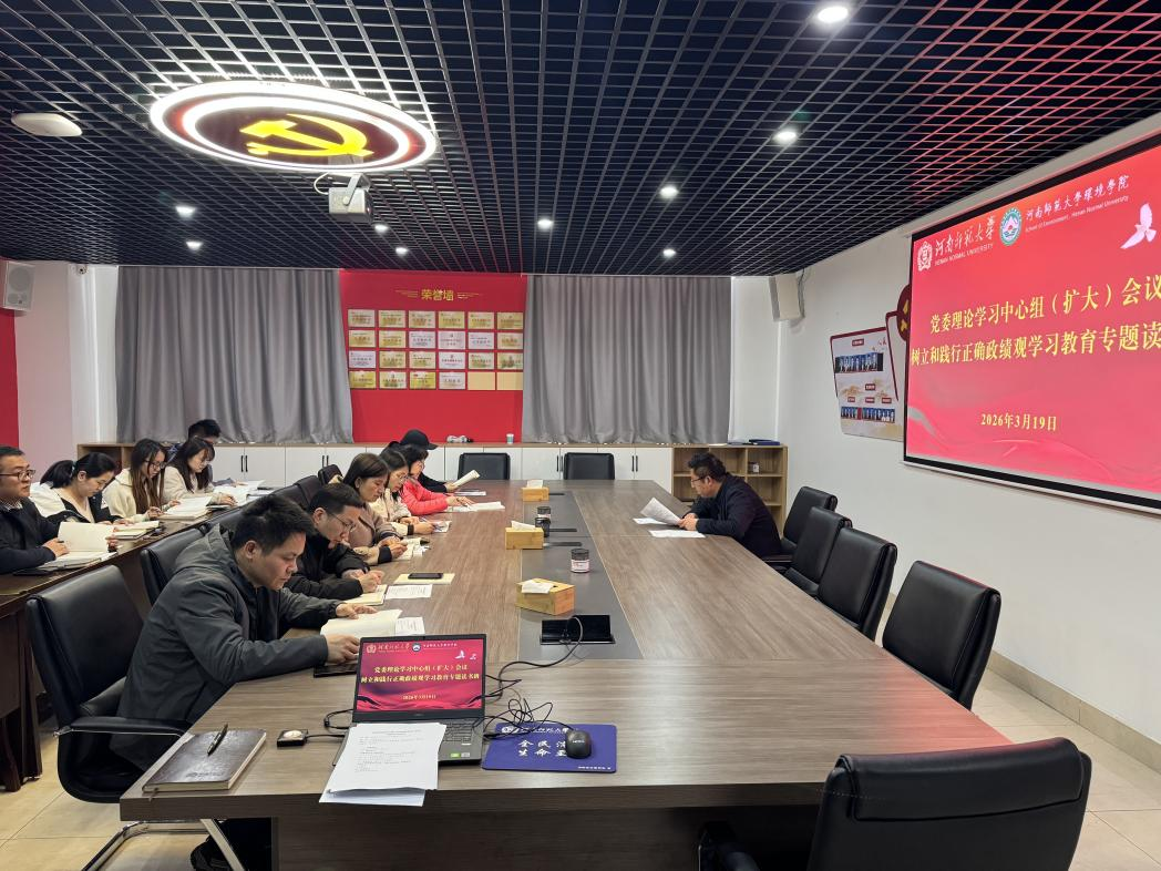 3月19日下午,环境学院在实训楼1511会议室召开党委理论学习中心组(扩大)学习会,专题学习习近平总书记关于树立和践行正确政绩观的重要论述。院领导班子成员、党委委员、党支部书记参加会议,会议由院长曹治国主持。