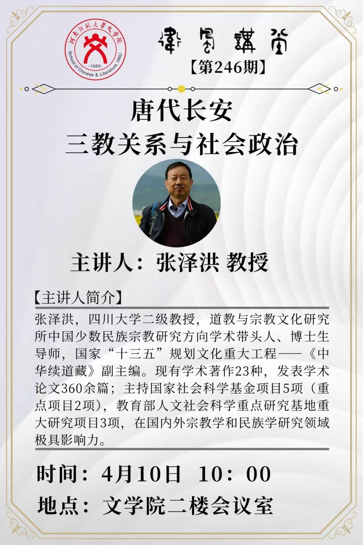 四川大学张泽洪教授将应邀做客“卫风讲堂”