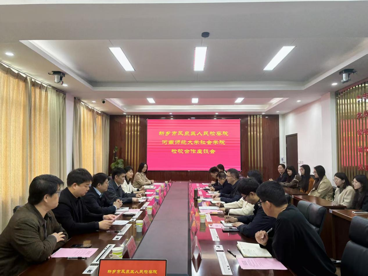 4月2日上午,社会学院与新乡市凤泉区人民检察院举行检校合作座谈会。社会学院党委书记瞿洪明一行与凤泉区委常委、政法委书记宋红锦,凤泉区人民检察院党组书记、检察长连丽娟等区检察院负责同志参加座谈。
