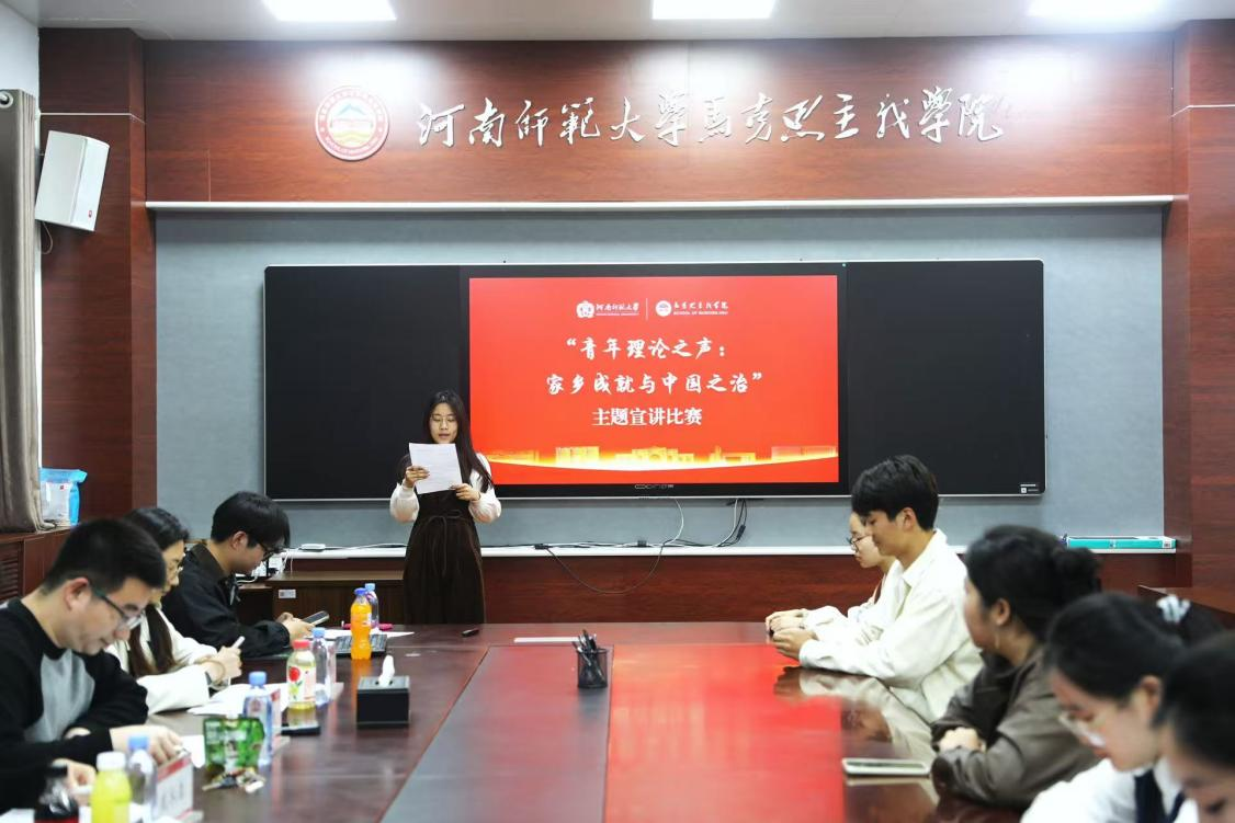 为引导青年学子立足家乡发展、感悟治理成效、厚植家国情怀,4月1日晚,马克思主义学院于平原楼201会议室举办“青年理论之声:家乡成就与中国之治”宣讲比赛。学院学子积极响应,共11名选手进行宣讲。院党委副书记滕梁莹、团委书记薄一凡及研究生代表担任评委。