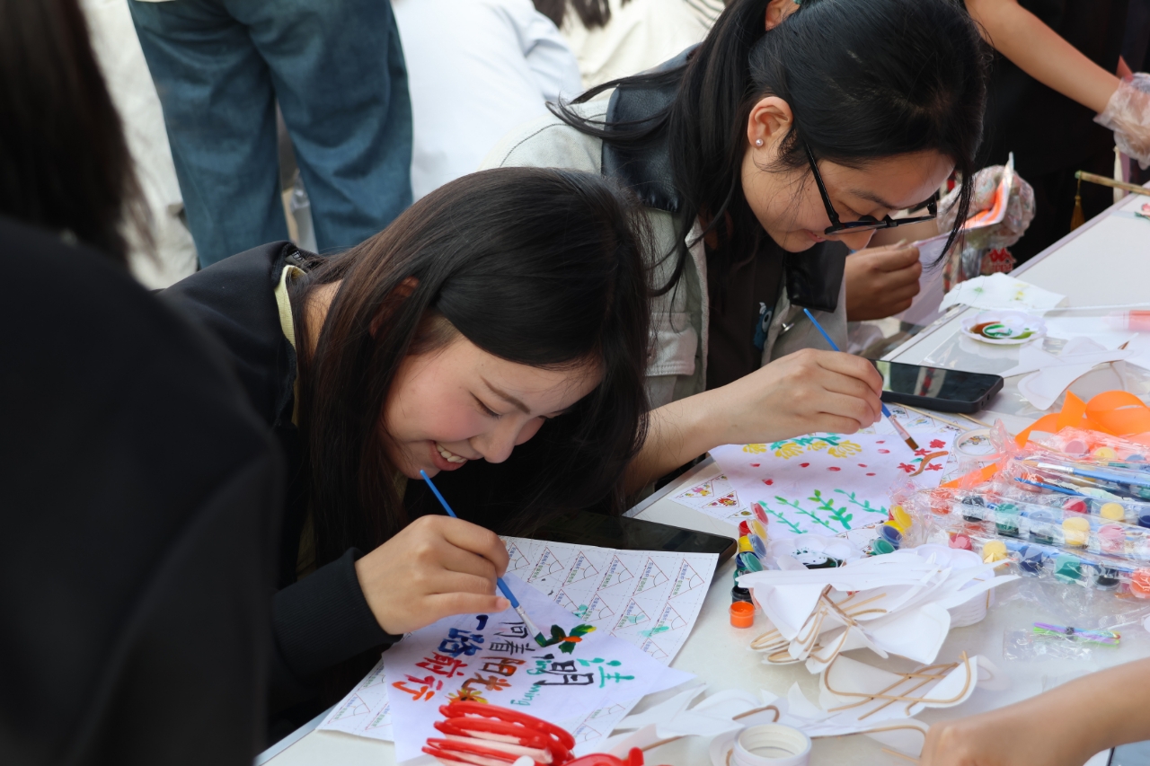 本次活动紧扣清明时节文化内涵,精心打造食韵清明、民俗手作、剪纸寄思、自然寻春、雅韵展演五大主题板块,以美食制作、非遗手作、文化传承、自然探索、雅乐展演的多元形式,让学子们零距离感受传统民俗的独特韵味。“食韵清明”活动,同学们围坐一起亲手制作青团,在揉皮、包馅、品尝的动手实践中,品味清明特色美食,感受春日美好。“民俗手作”环节,志愿者为同学们讲解风筝、漆扇背后的非遗故事,大家在纯白风筝上绘制清明主题图案,在扇面书写寄语,在动手实践中感受中华优秀传统文化魅力。“剪纸寄思”活动,同学们在专业指导下学习剪纸技艺,剪出垂柳、菊花等图案纹样并写下寄语,以传统形式缅怀先辈、寄托情思。