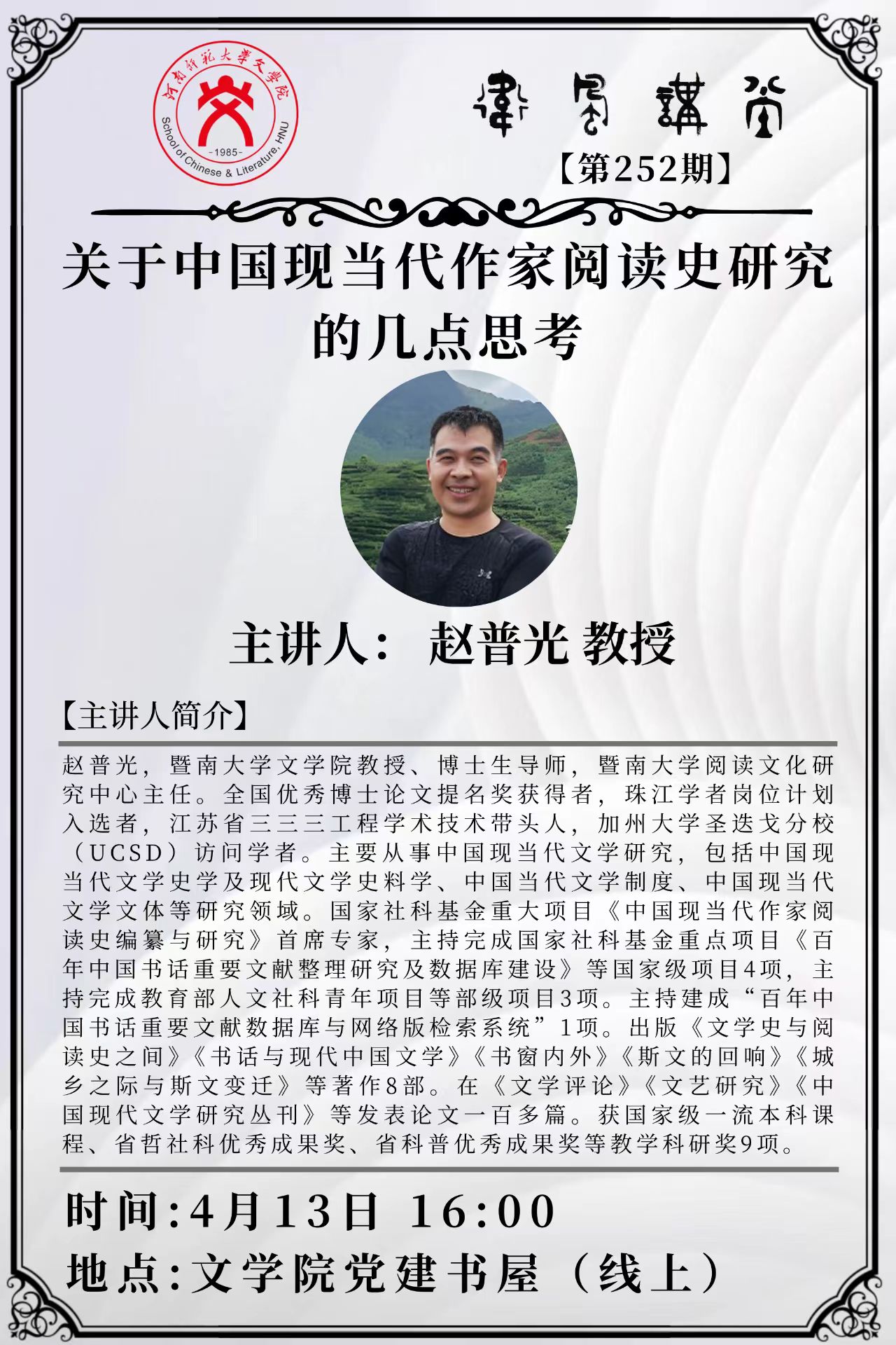 暨南大学赵普光教授将应邀做客“卫风讲堂”
