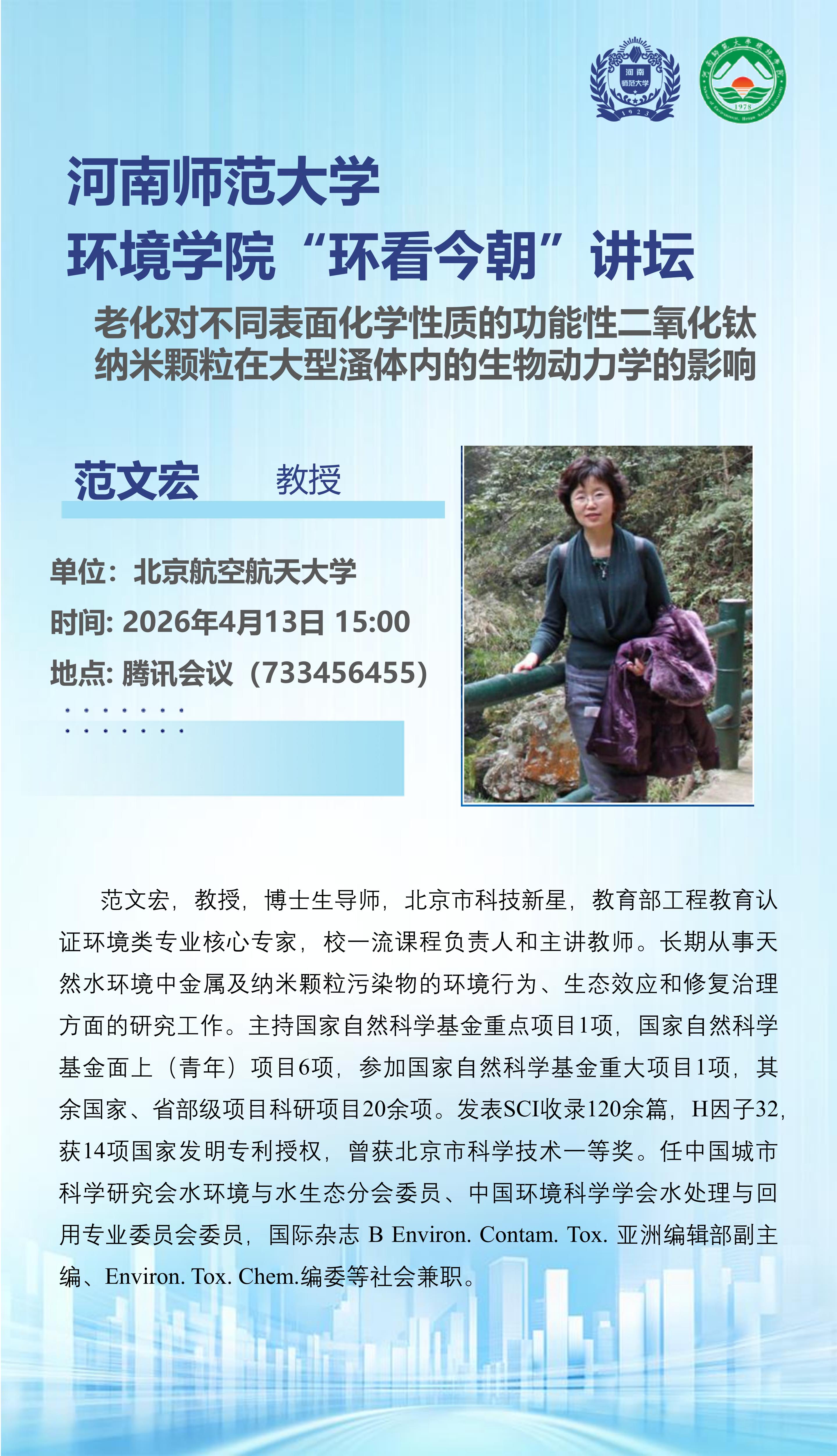 北京航空航天大学范文宏教授将应邀做客“环看今朝”讲坛