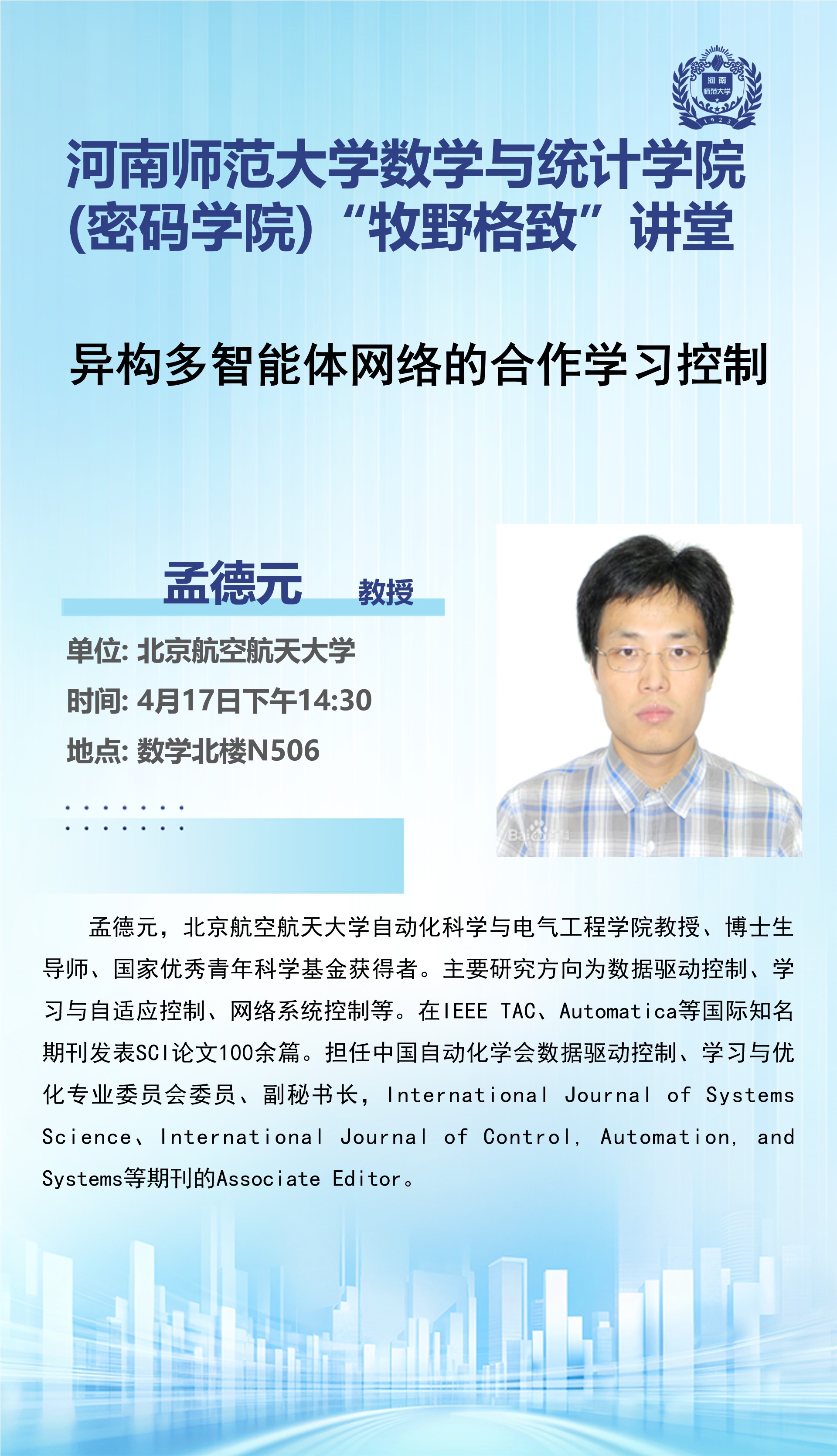 北京航空航天大学孟德元教授将应邀做客“牧野格致”讲堂