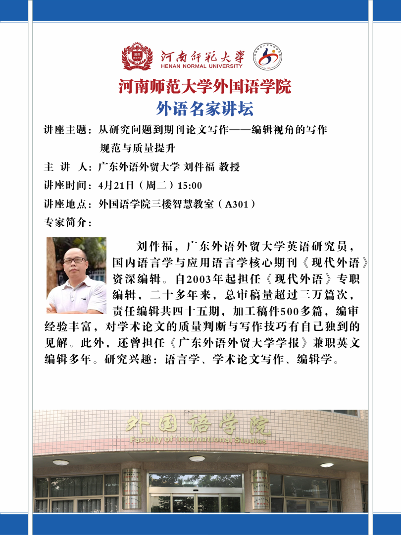 广东外语外贸大学刘件福教授将应邀做客“外语名家讲坛”