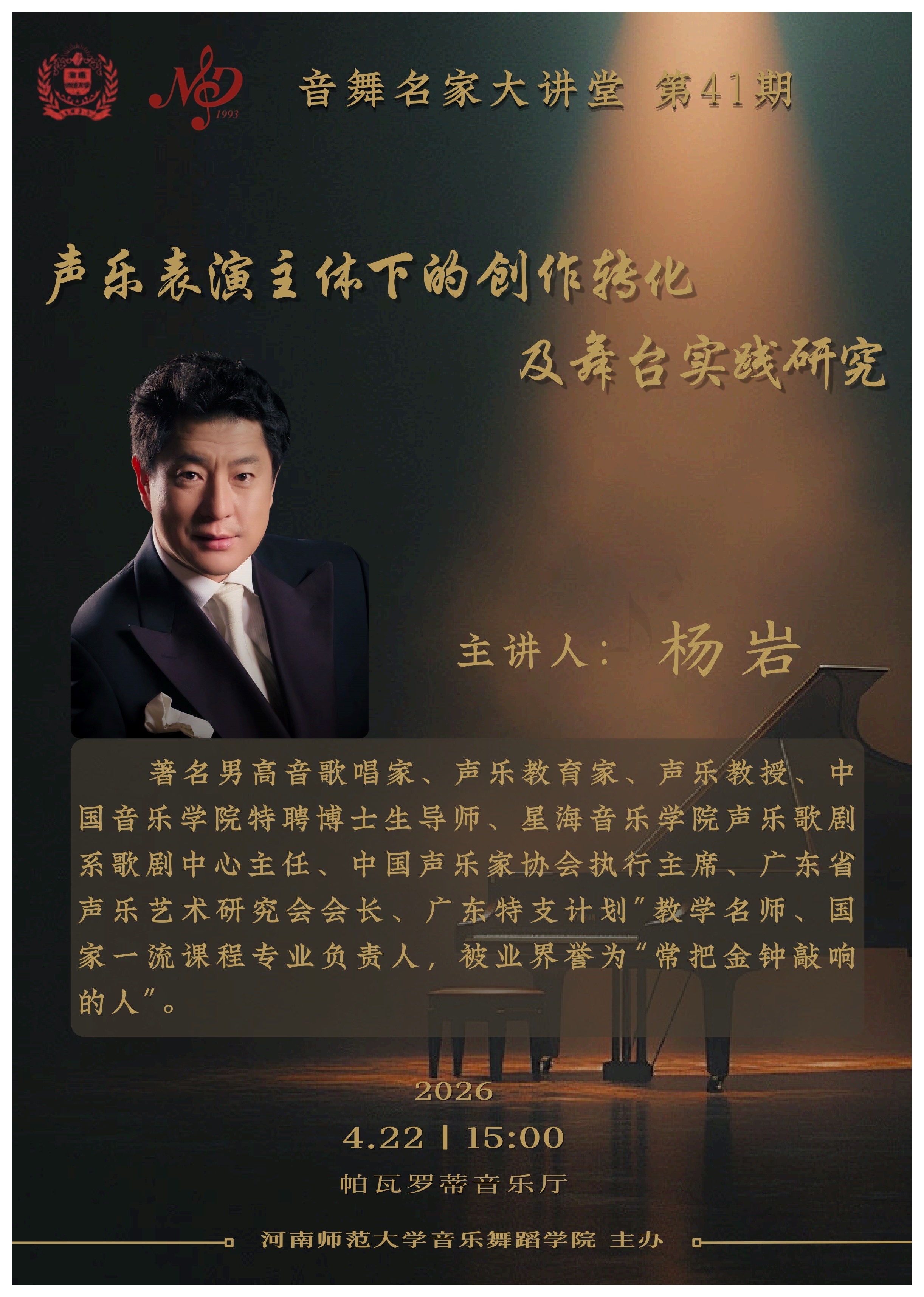 星海音乐学院杨岩教授将应邀做客“音舞名家大讲堂”