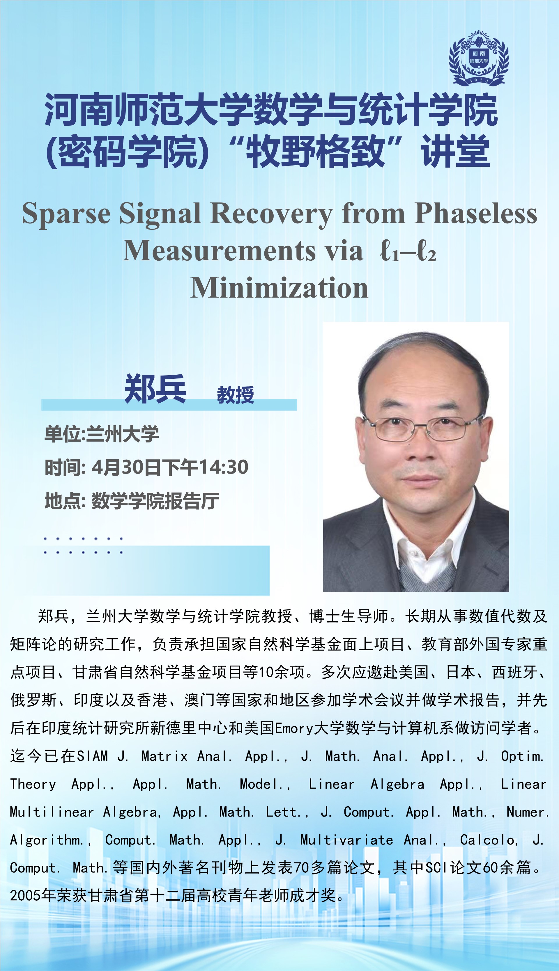 兰州大学郑兵教授将应邀做客“牧野格致”讲堂