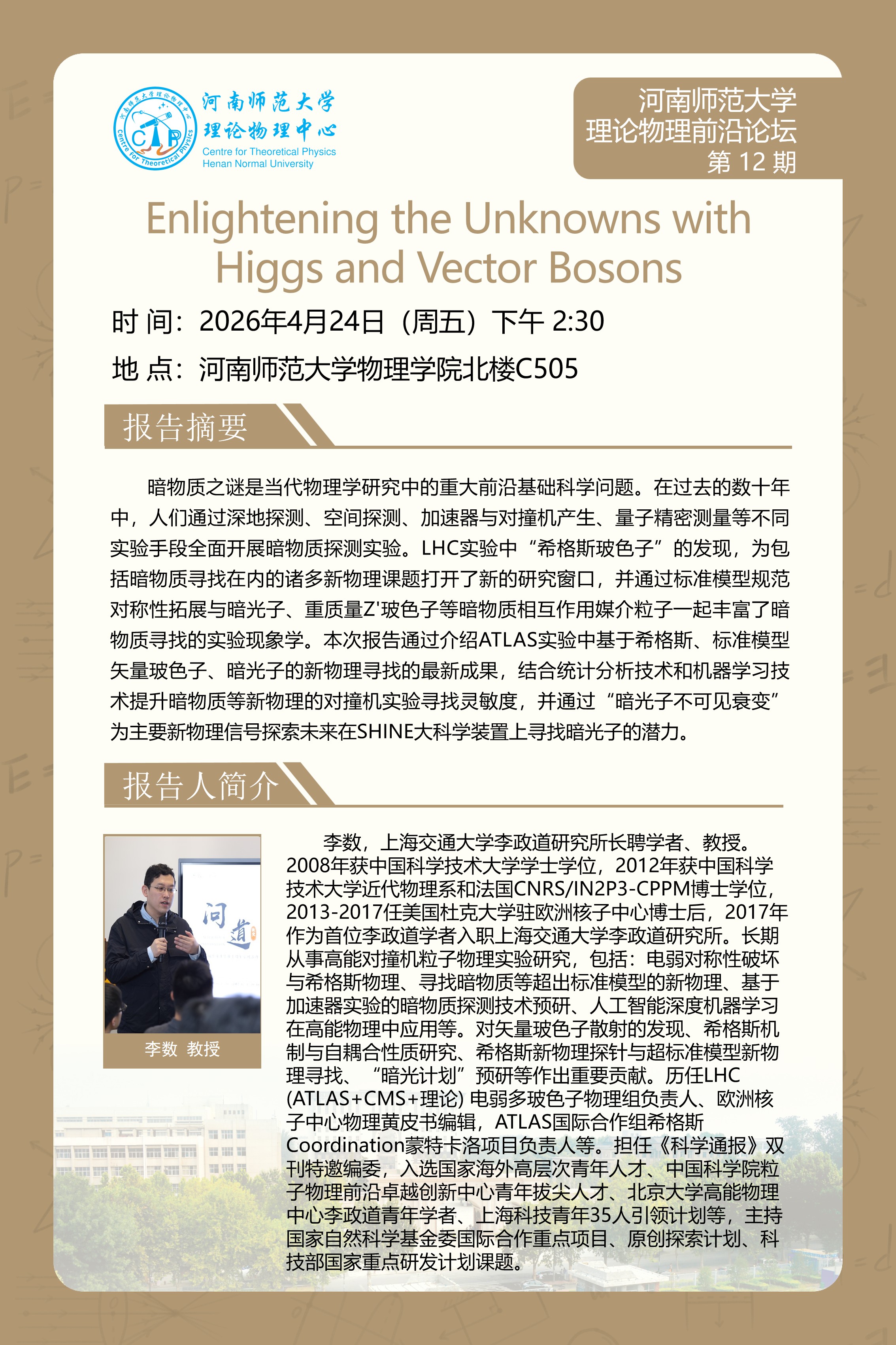 上海交通大学李政道研究所李数教授将应邀做客“理论物理前沿论坛”