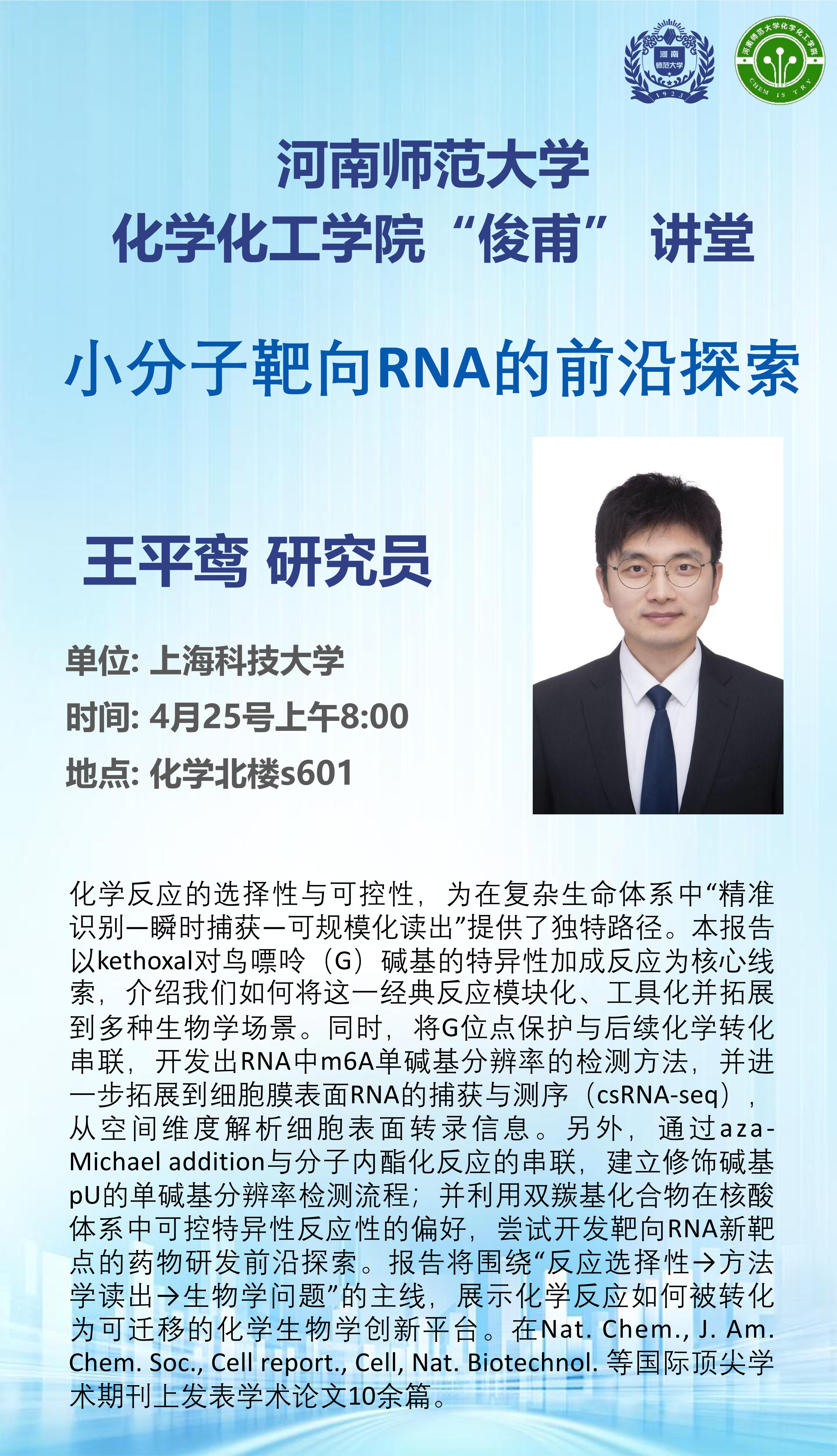 上海科技大学王平鸾研究员将应邀做客“俊甫讲堂”